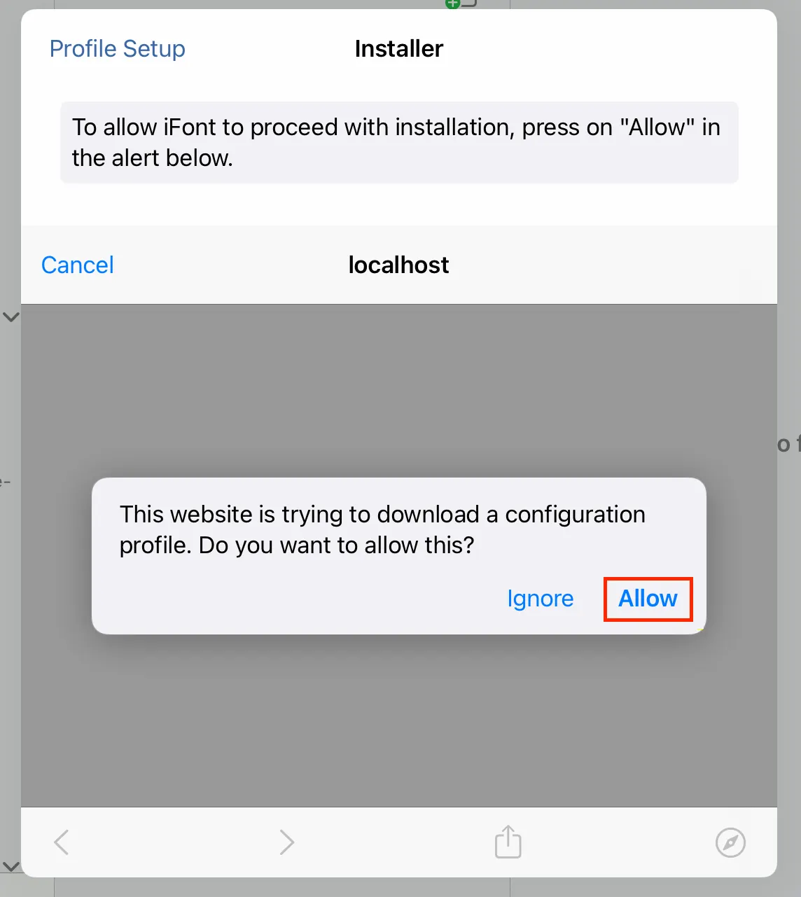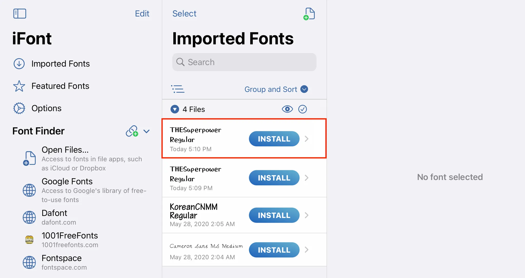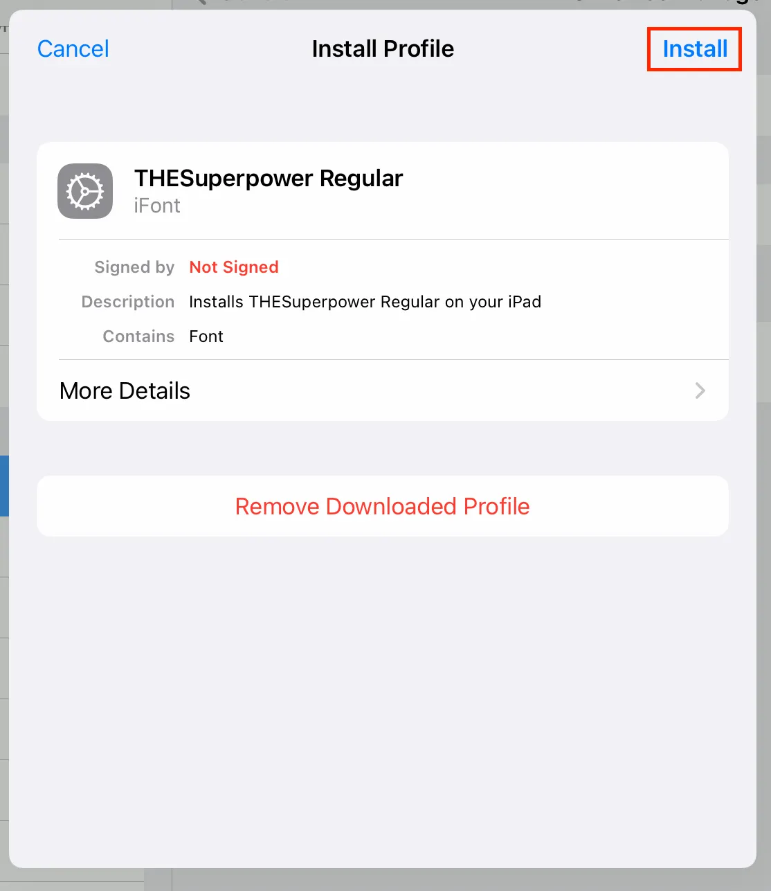 Tap on the font, then tap Install. Enter your device passcode to allow, then tap Install again.