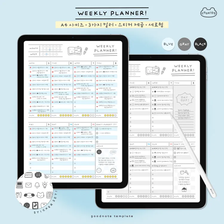(ex. 월요일 시작, 일요일 시작, 색상 별 버전, 위클리 레이아웃이 다른 버전 등)