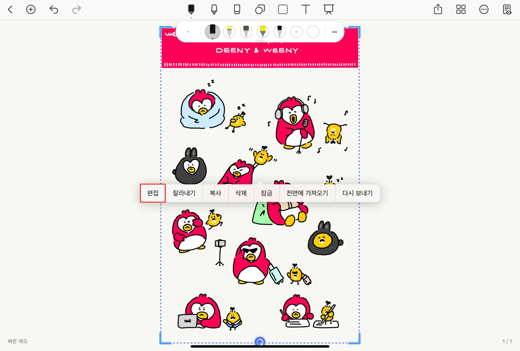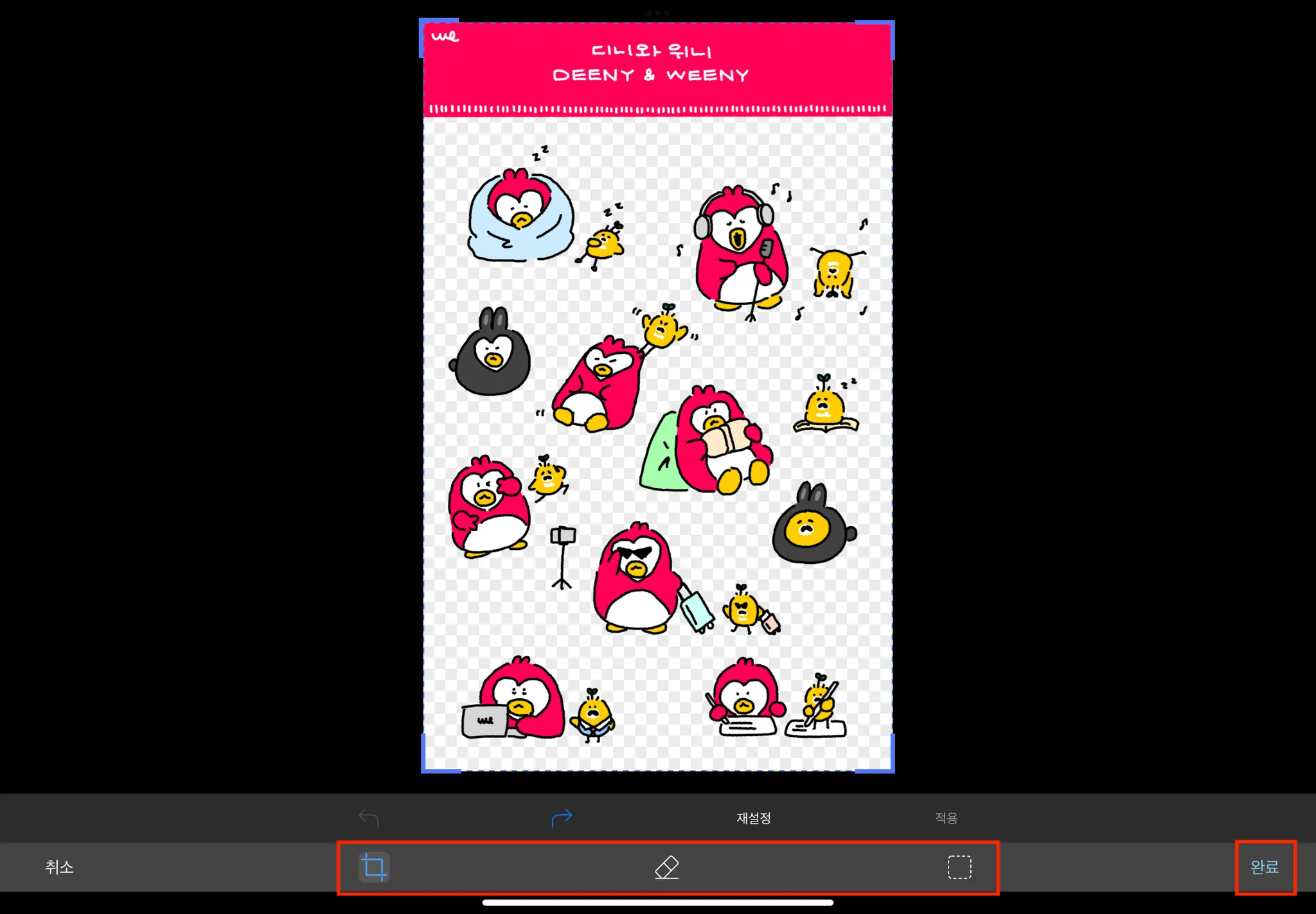 하단에서 [사각형], [지우개], [자유형] 툴을 활용해 스티커 모양대로 자른 후 [완료]를 클릭하세요.