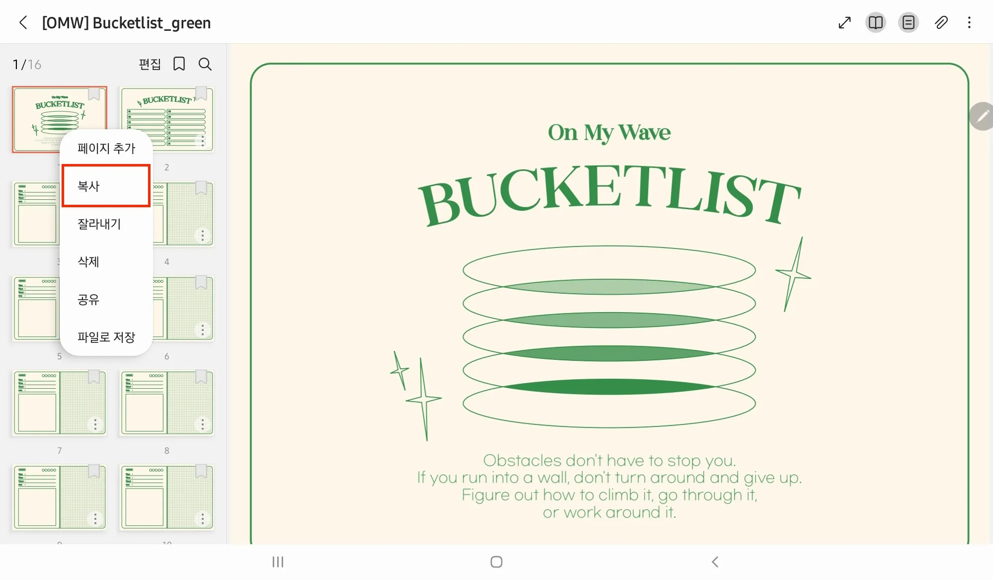 02. 복사하고 싶은 페이지에 [옵션 더보기] 점 세개 클릭