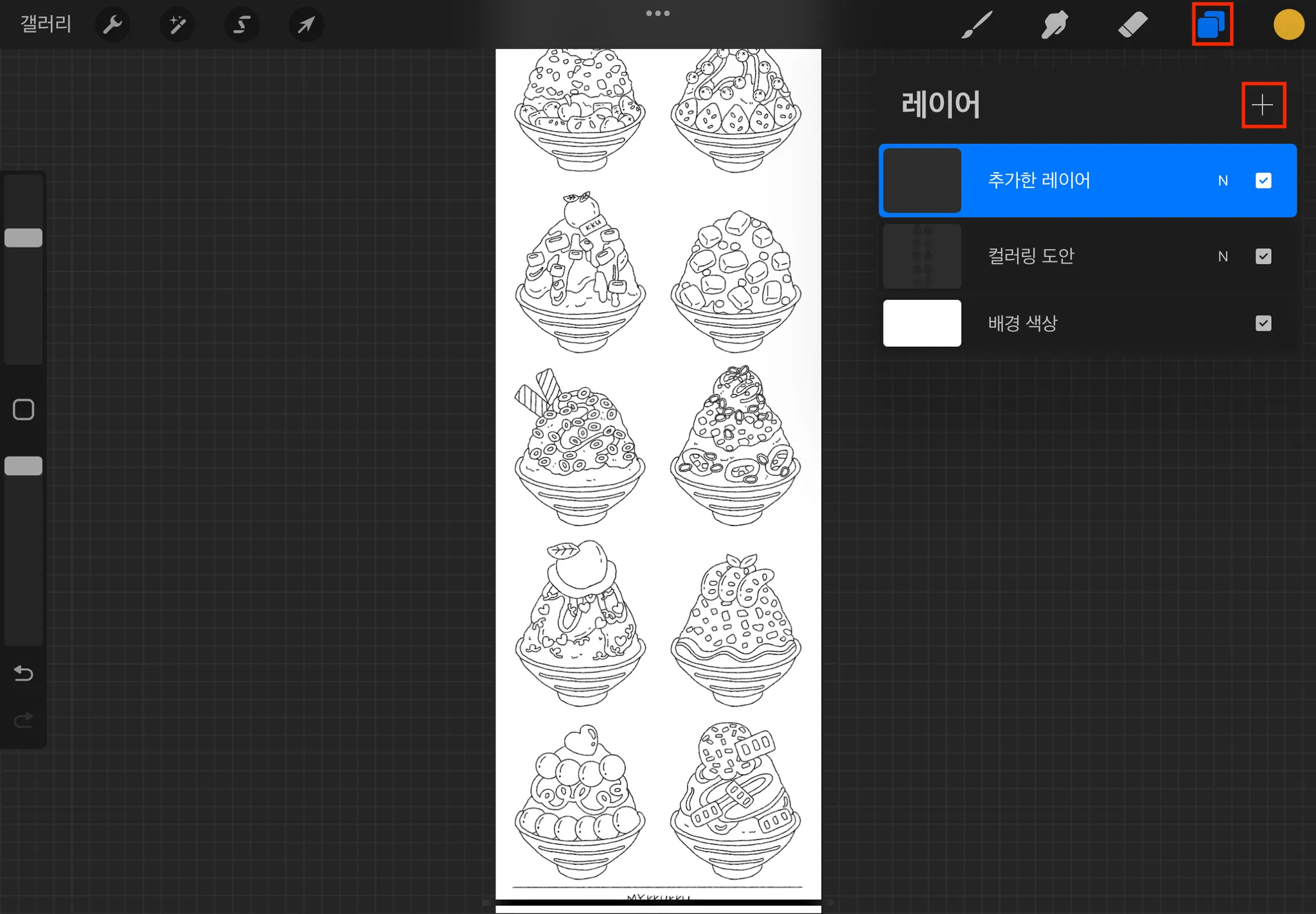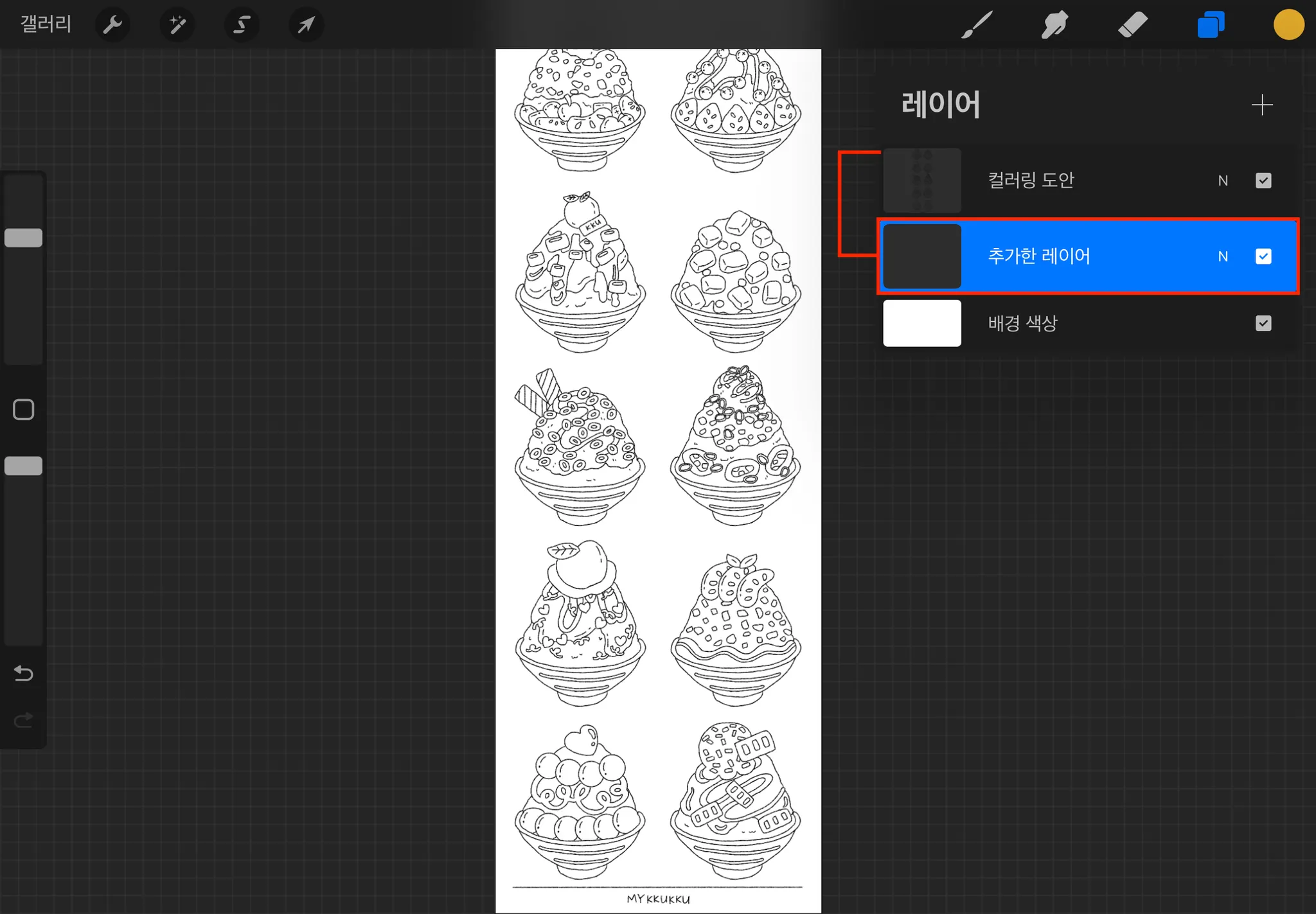 03. 추가한 레이어를 드래그해 컬러링 도안 밑으로 이동