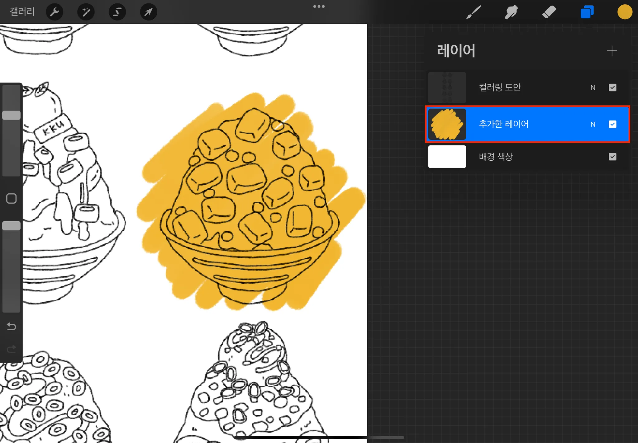 추가한 레이어에 색칠하면 도안 밑으로 색이 입혀져요.