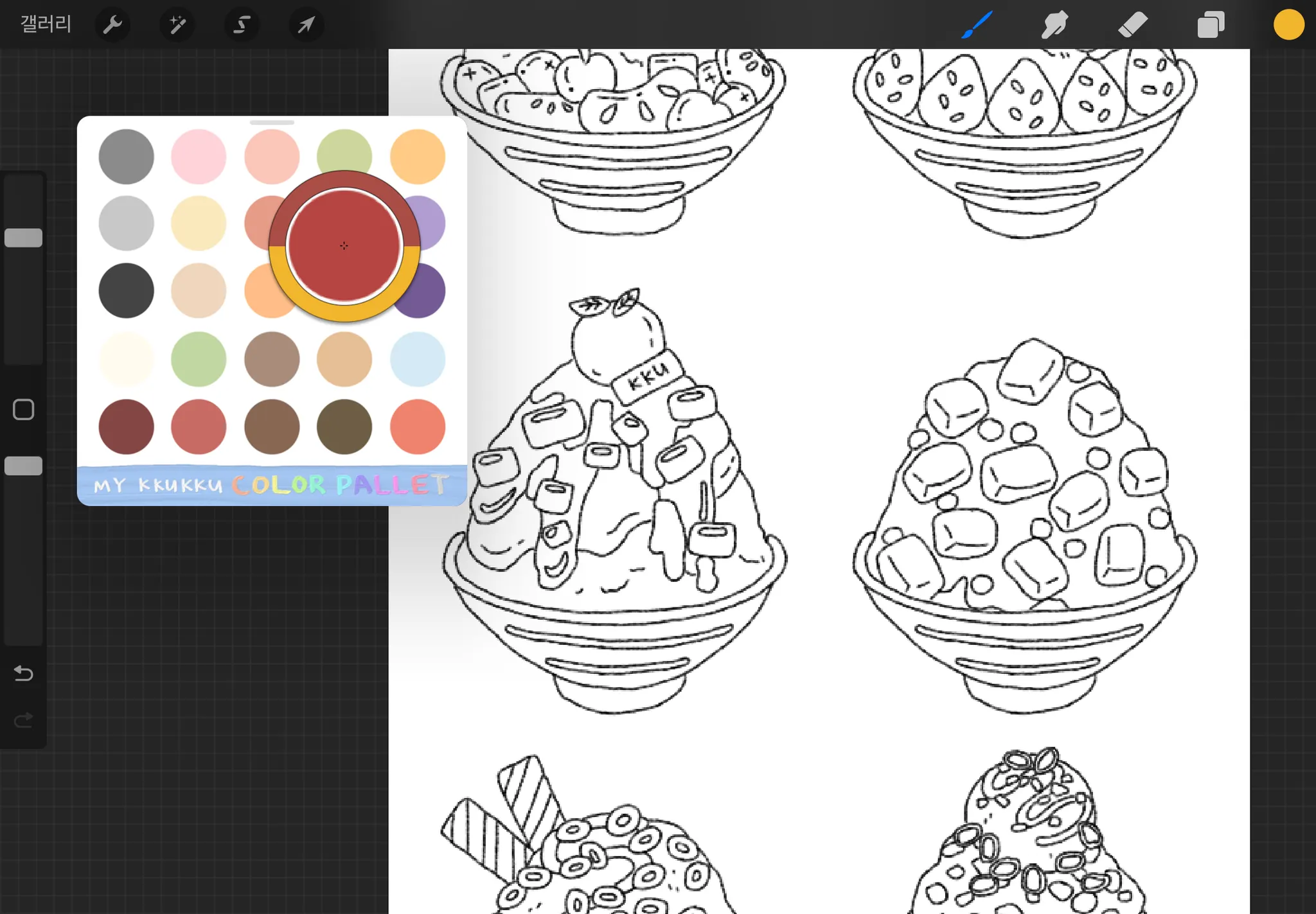 레퍼런스 화면에서 사용하고자 하는 색을 길게 클릭하면 색을 추출할 수 있어요.