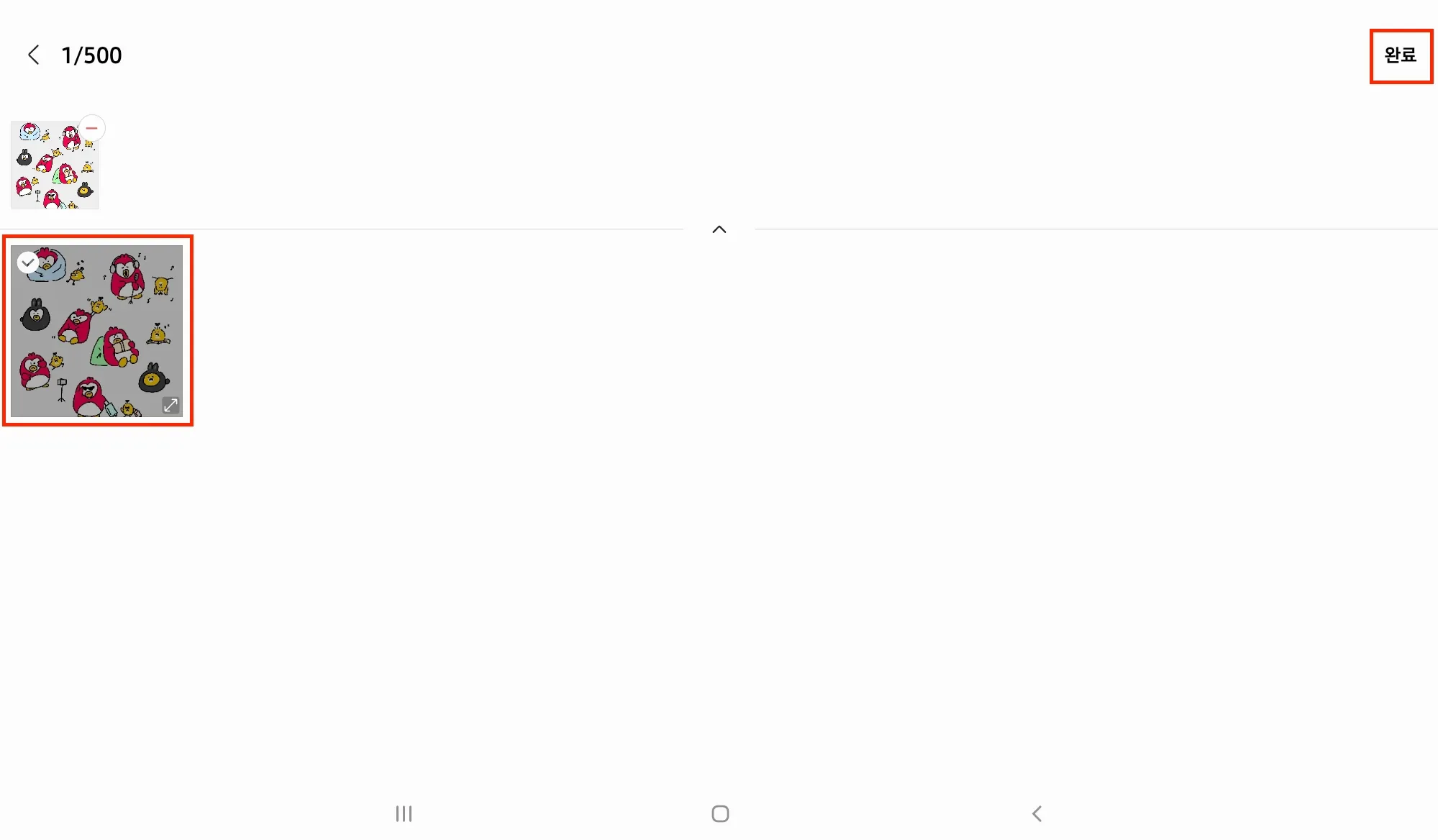 03. 스티커가 저장 된 폴더 선택 → 스티커 선택 → 완료
