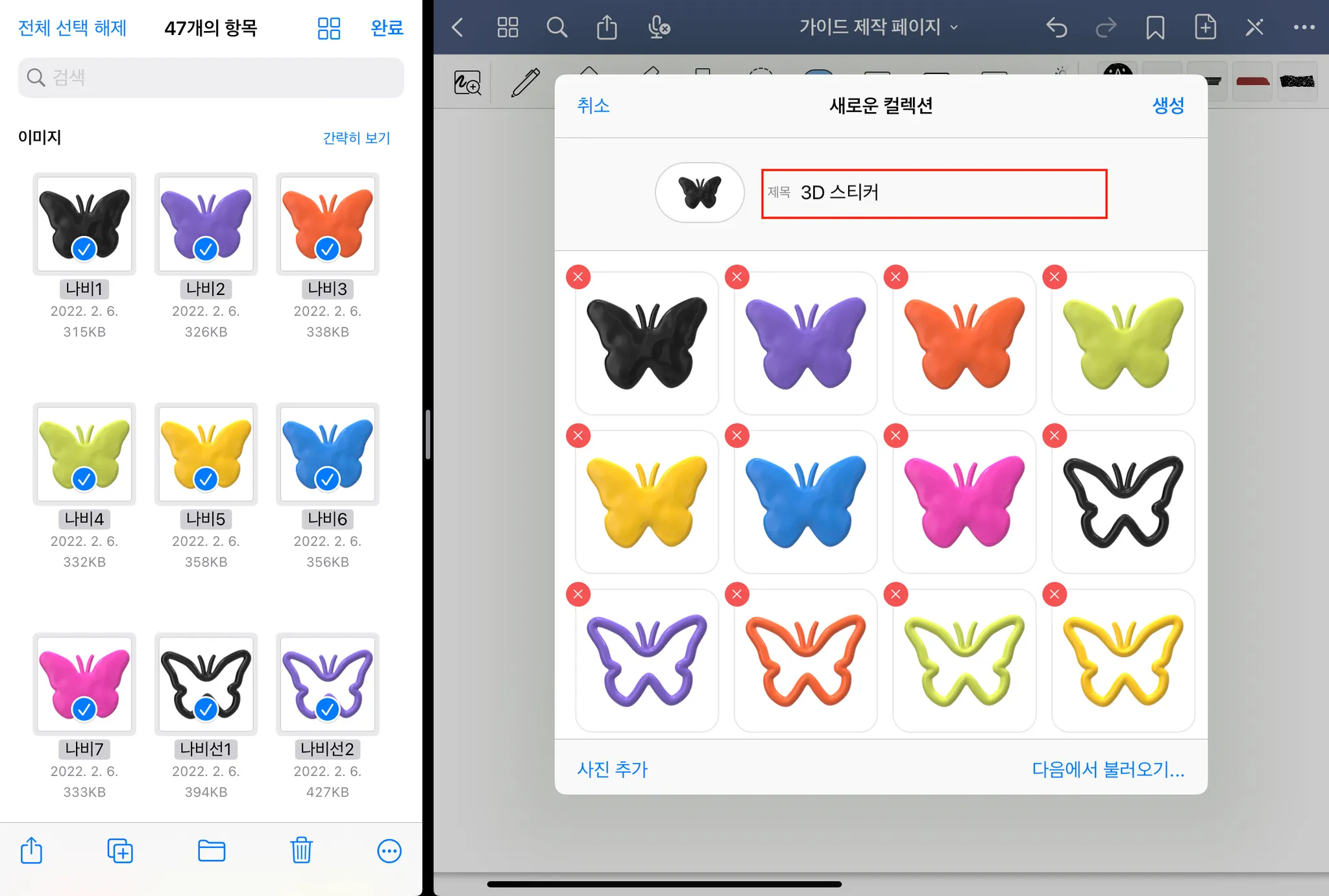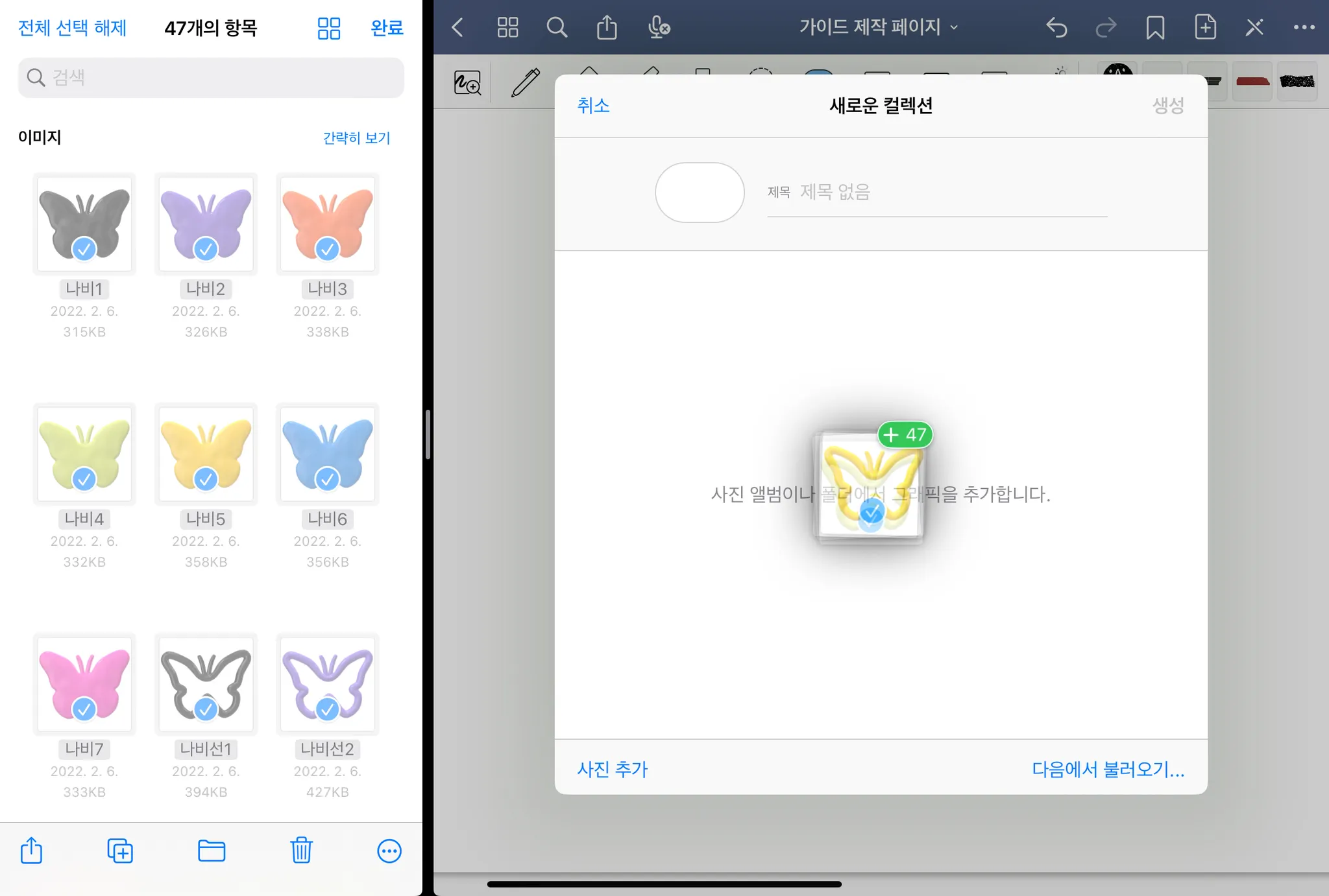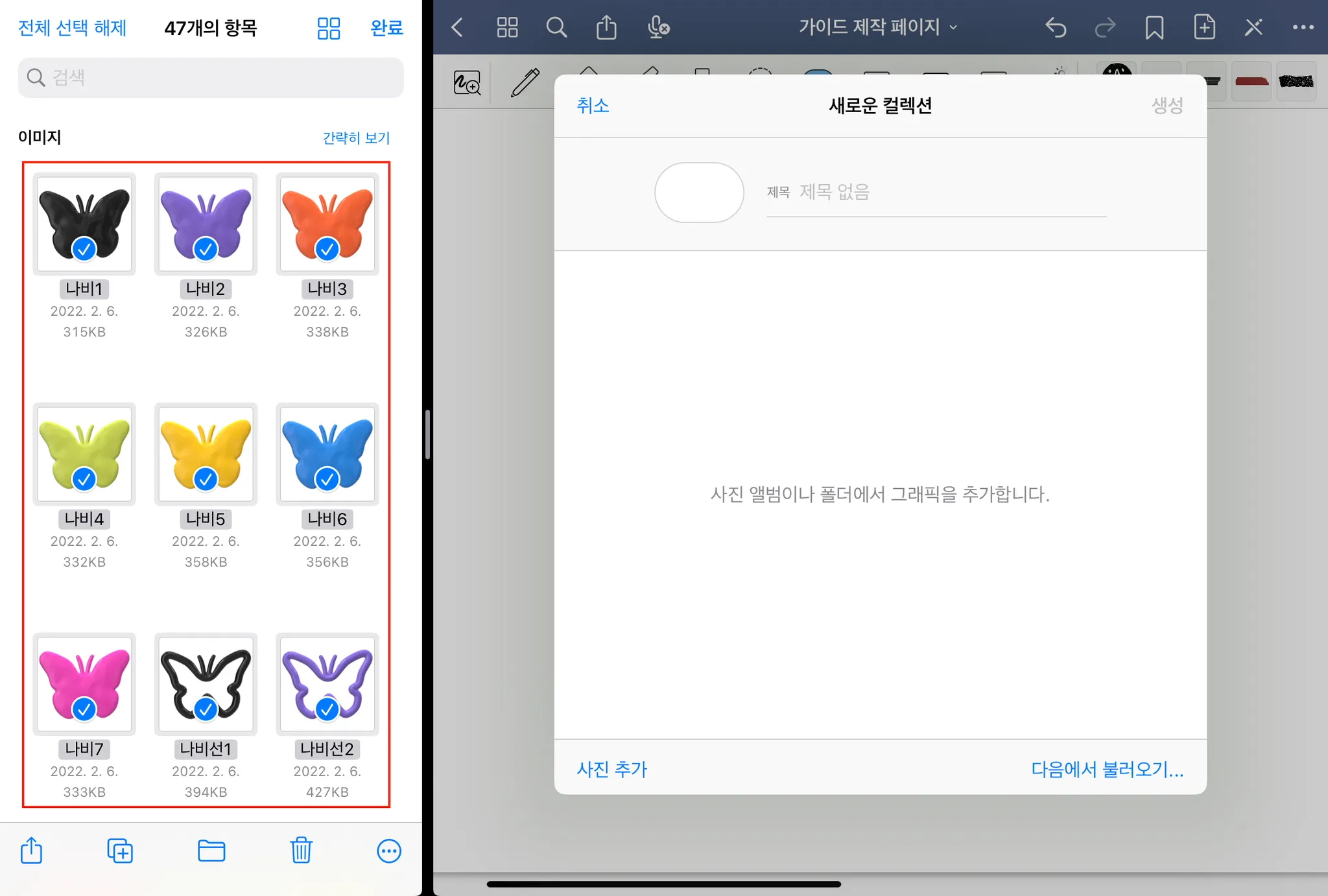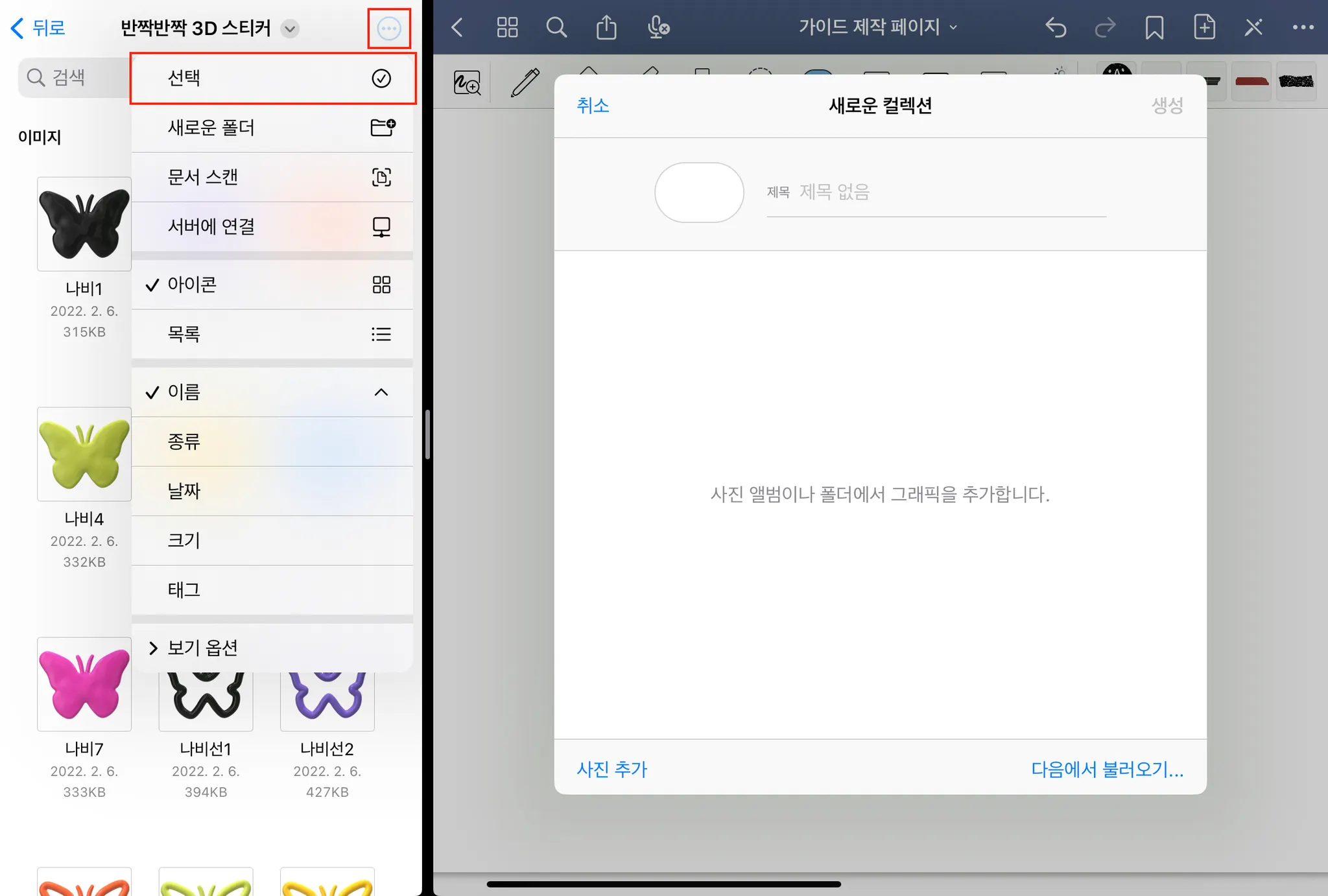 04. 우측으로 드래그 → 컬렉션 제목 설정
