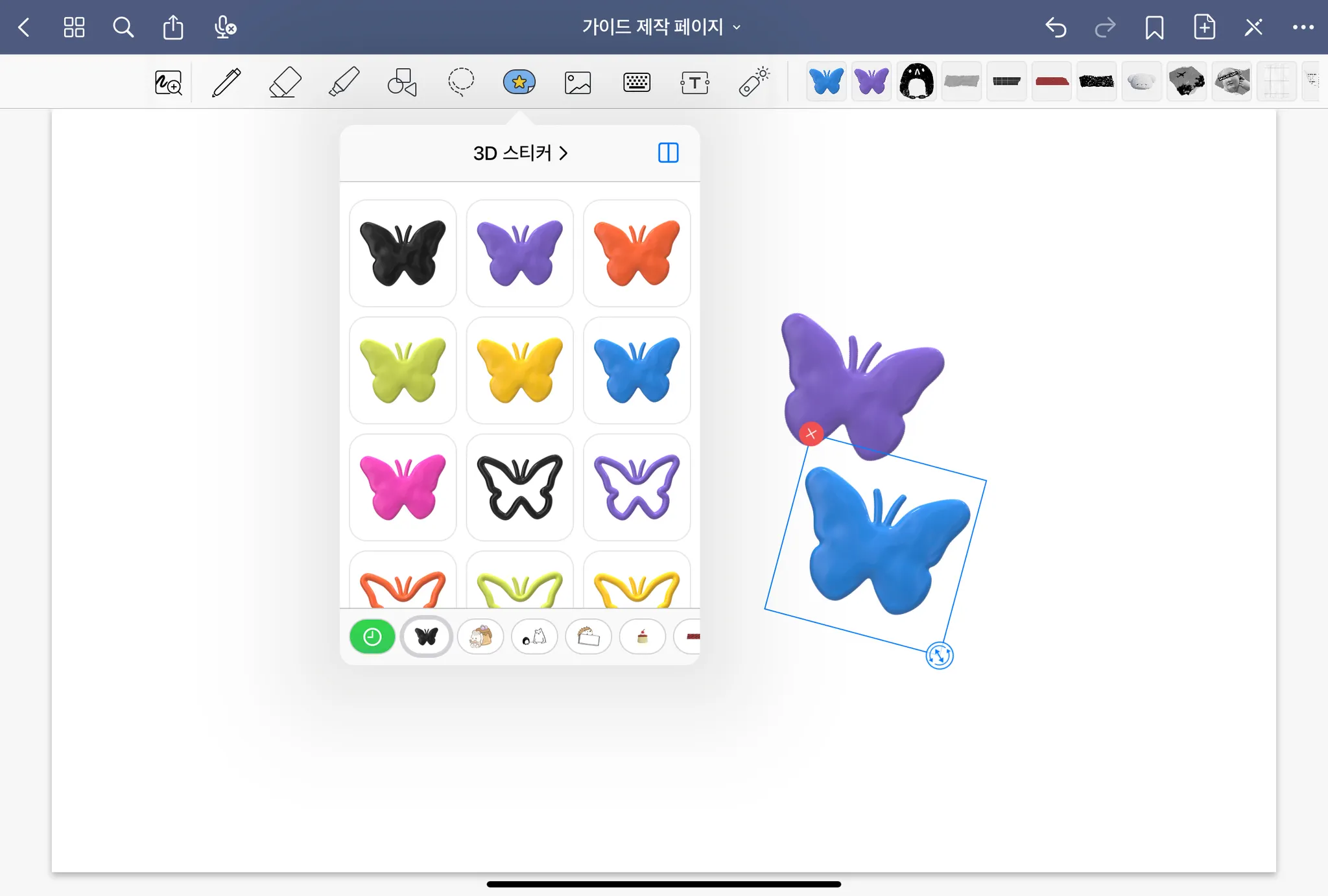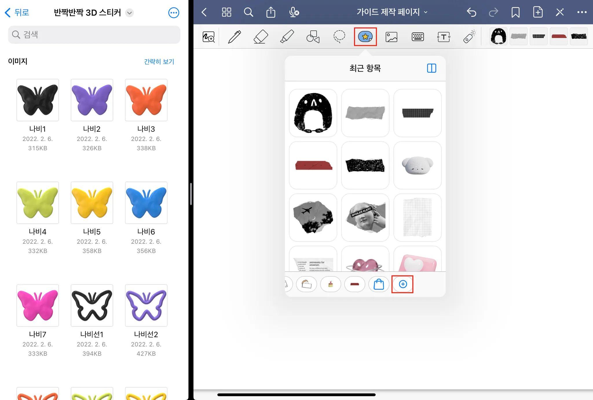 03. [더보기] → [선택] 후 추가할 스티커 전체 선택