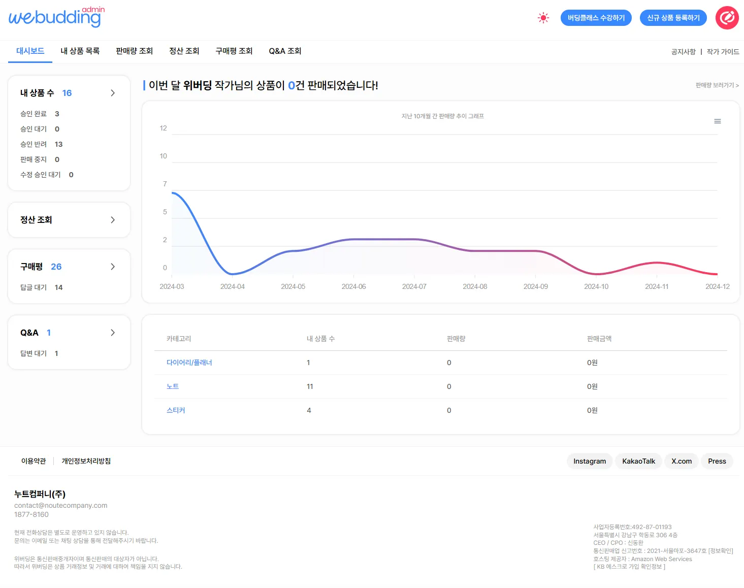 직품 등록 및 수정, 정산 정보, 공지사항 등 작가 활동과 관련된 정보는 모두 작가 어드민에서 확인하실 수 있어요!