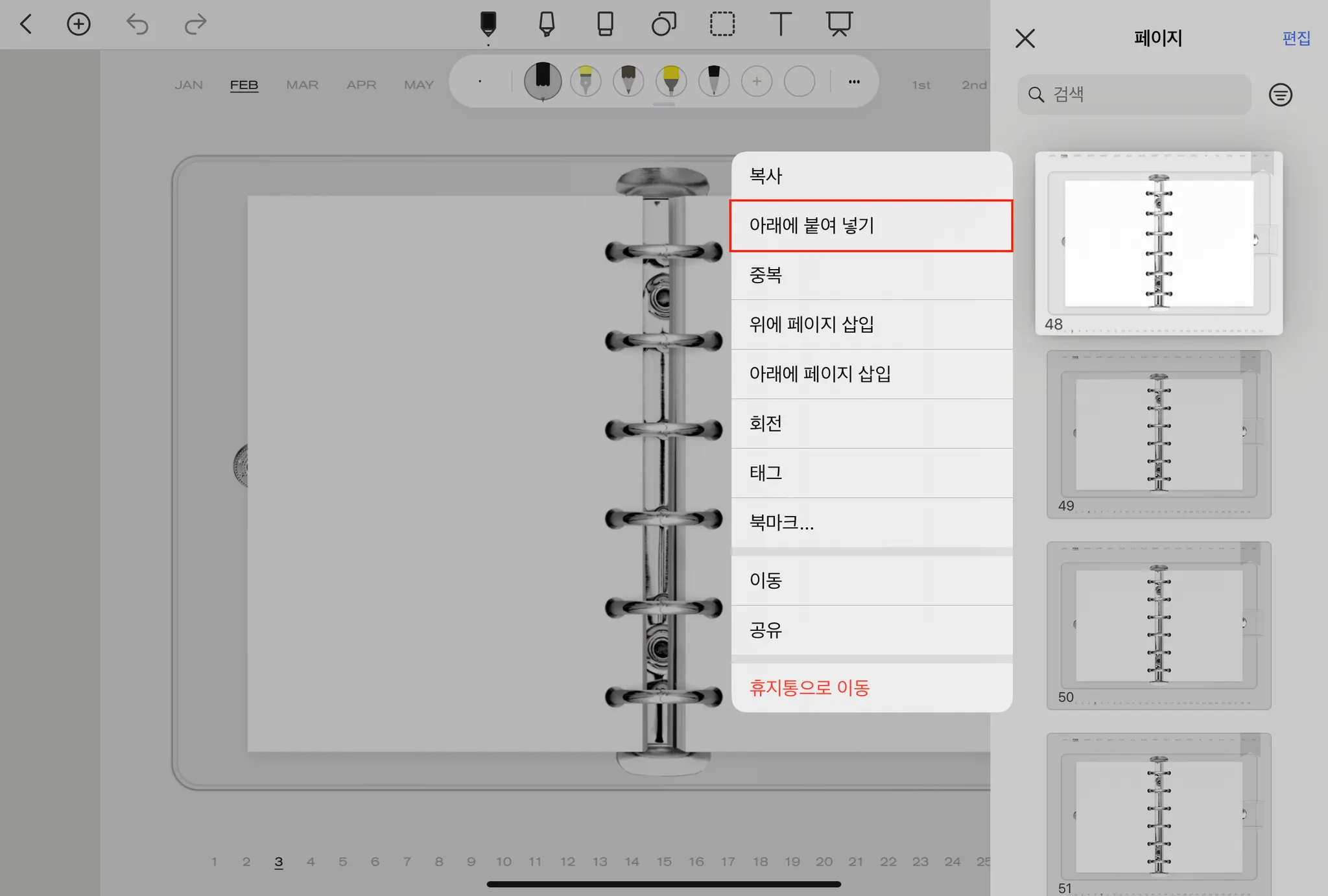 02. [아래에 붙여 넣기] 후 추가된 페이지 확인