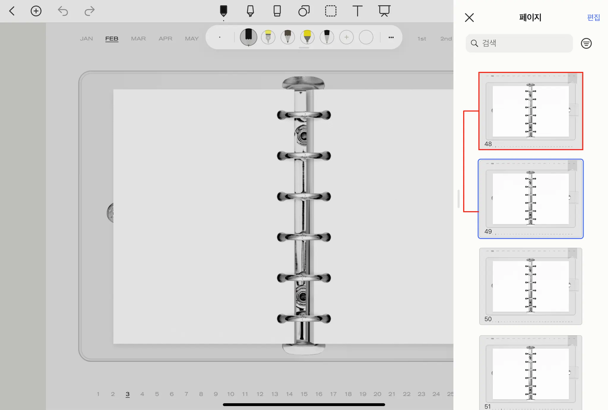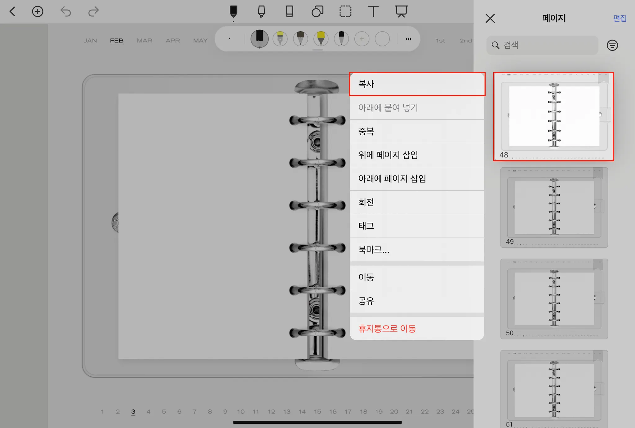 01. [페이지] 아이콘 → 추가할 페이지 확인 후 [복사]