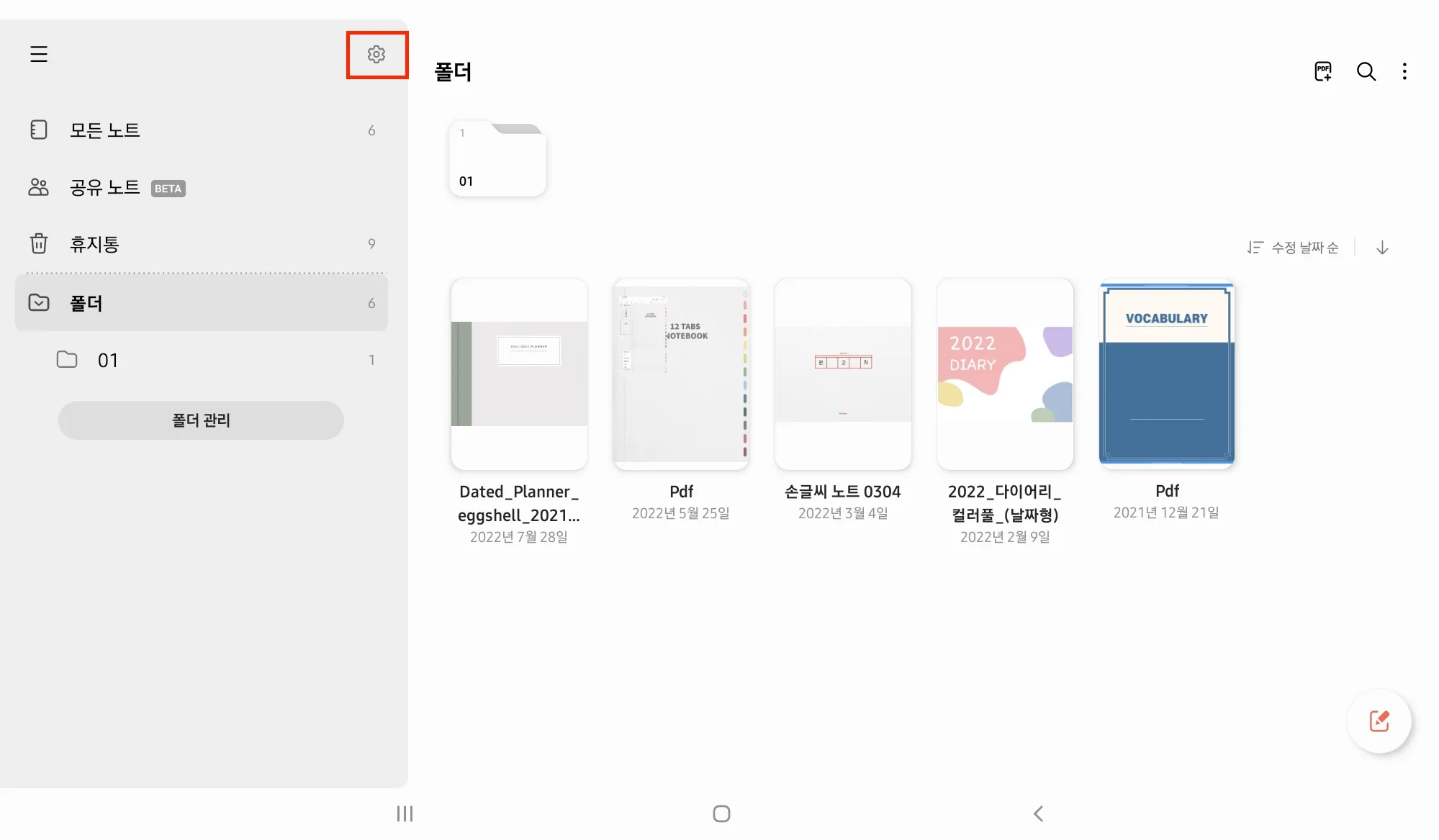 01. 왼쪽 상단의 [톱니바퀴 = 설정] 아이콘 클릭