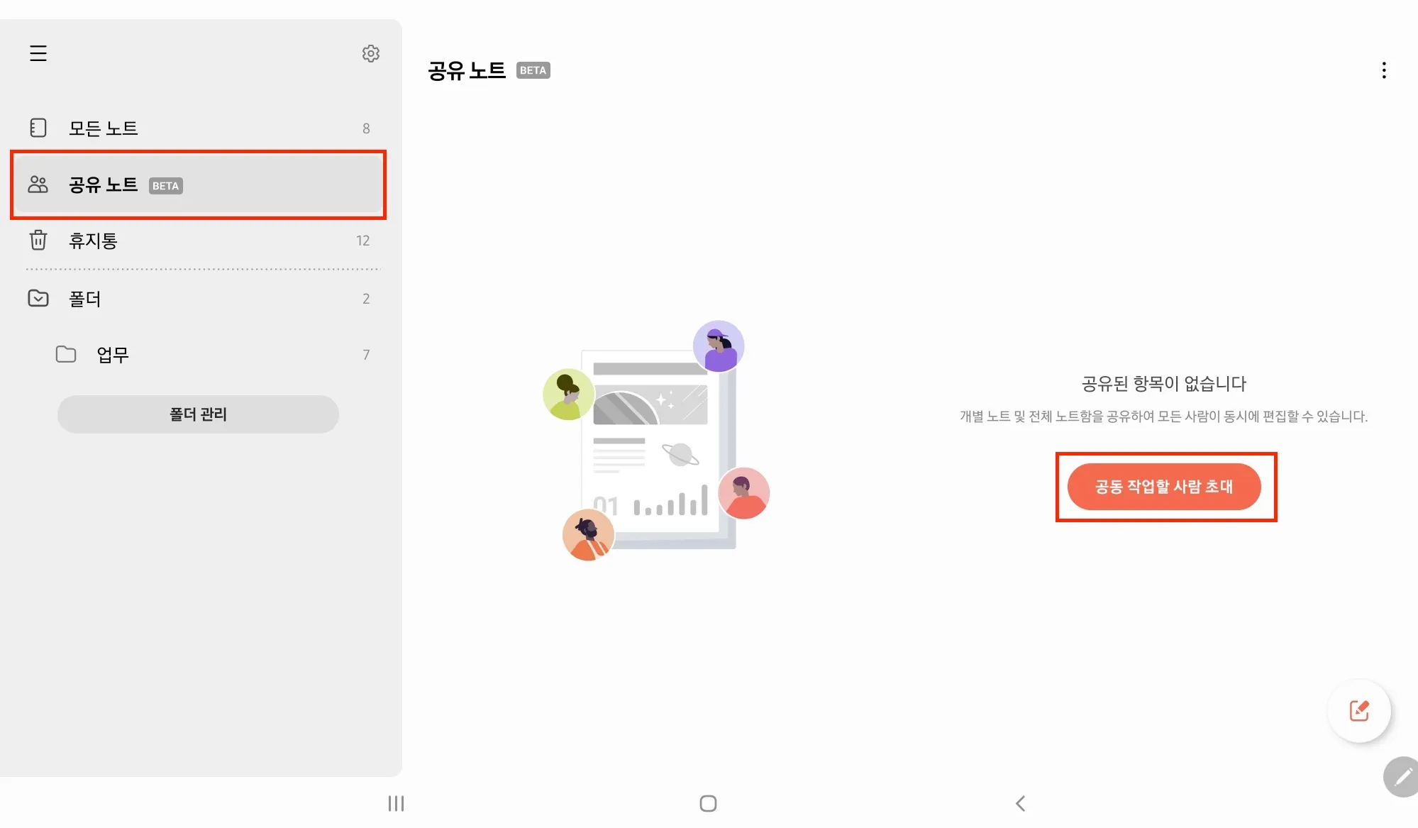 01. 공유 노트 → 공동 작업할 사람 초대 클릭