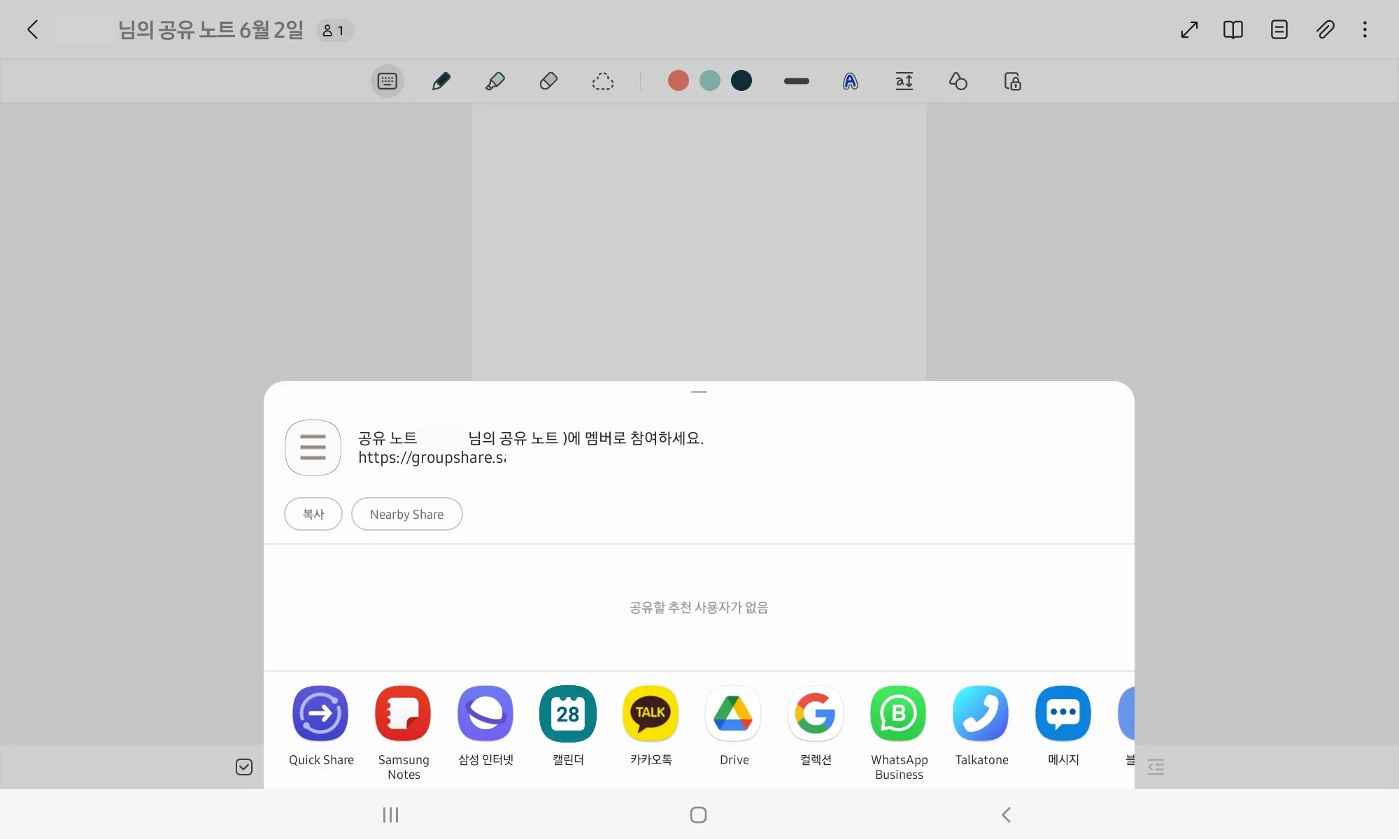 02. 공유 노트함에 추가 → 초대 링크 공유 or 연락처 선택 및 계정 추가 → 공유