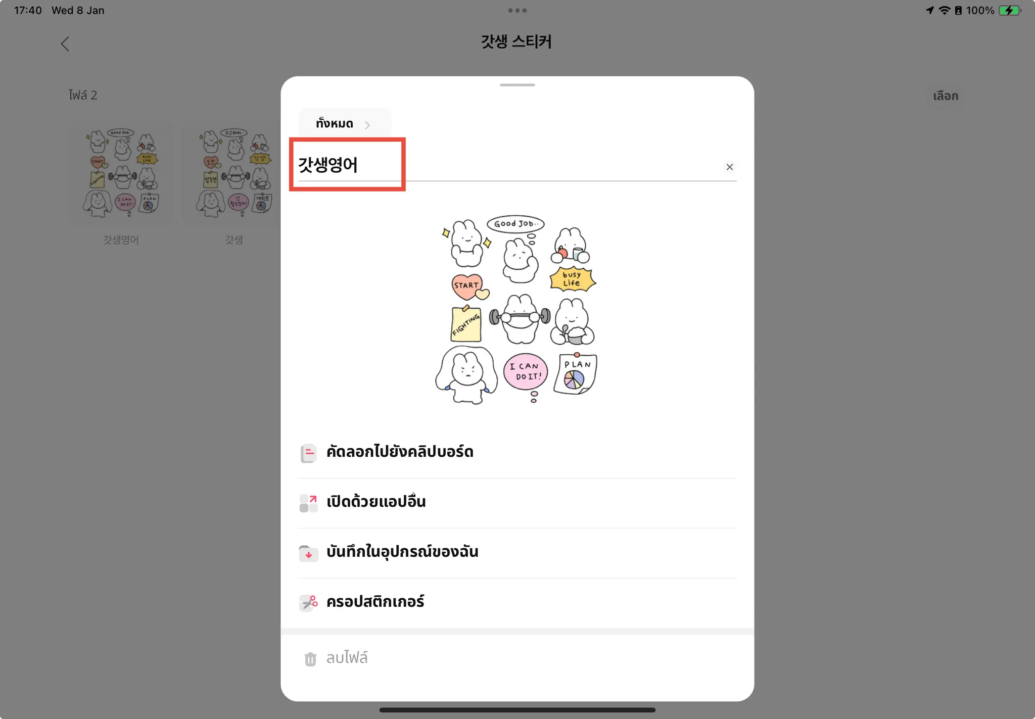 คลิกที่ตัวไฟล์ (แตะค้างไว้สำหรับโฟลเดอร์) ในหน้า Library เพื่อแสดงเมนูตัวเลือก