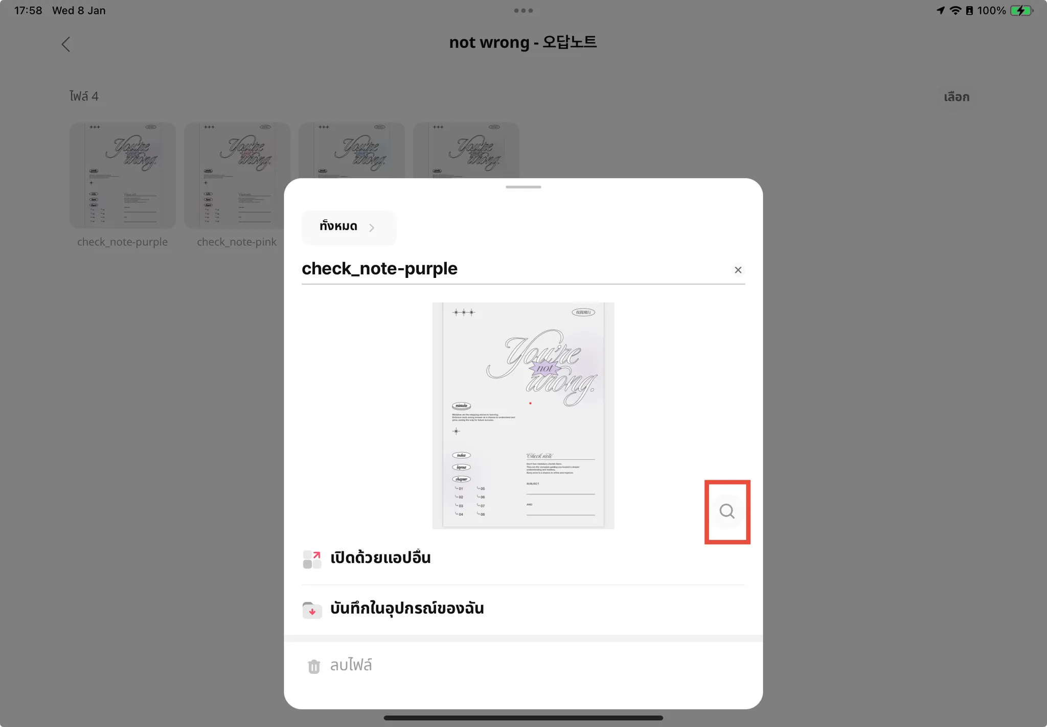 แตะที่ไอคอนแว่นขยาย
