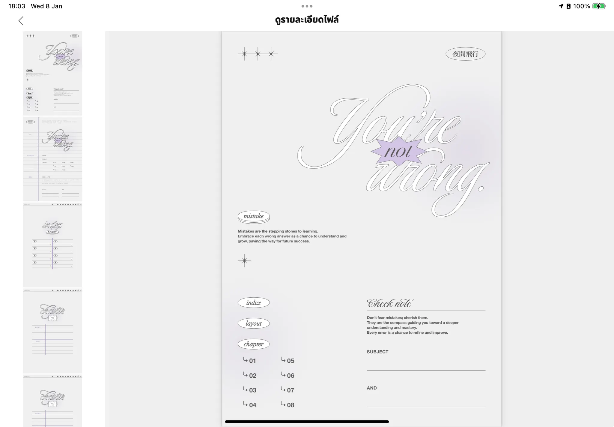 คุณสามารถดูตัวอย่างหน้าต่างๆ ในมุมมองขนาดใหญ่ได้ และใช้สองนิ้วเพื่อซูมเข้า/ซูมออก