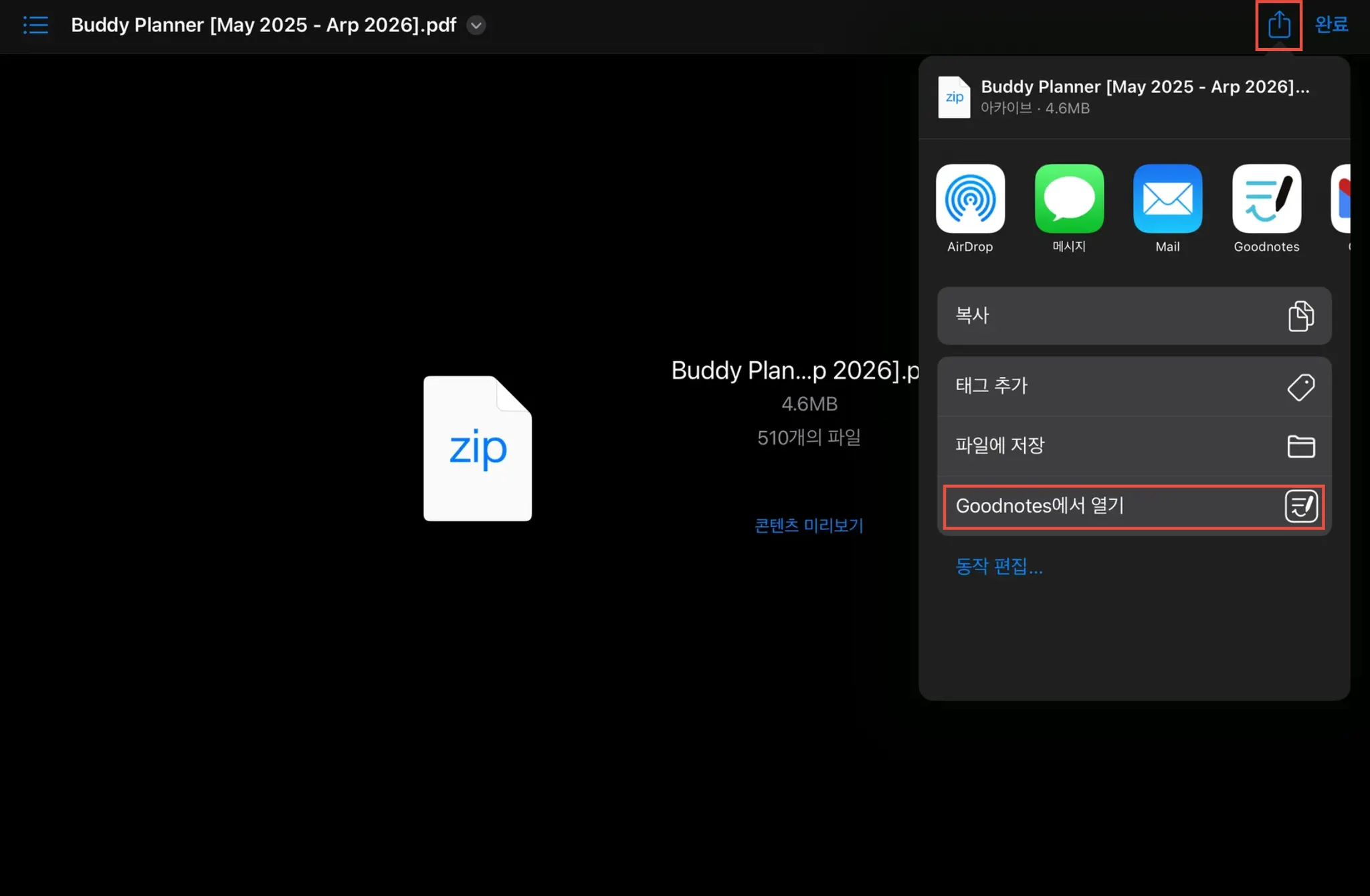 02. [공유] 아이콘 → [GoodNotes에서 열기]