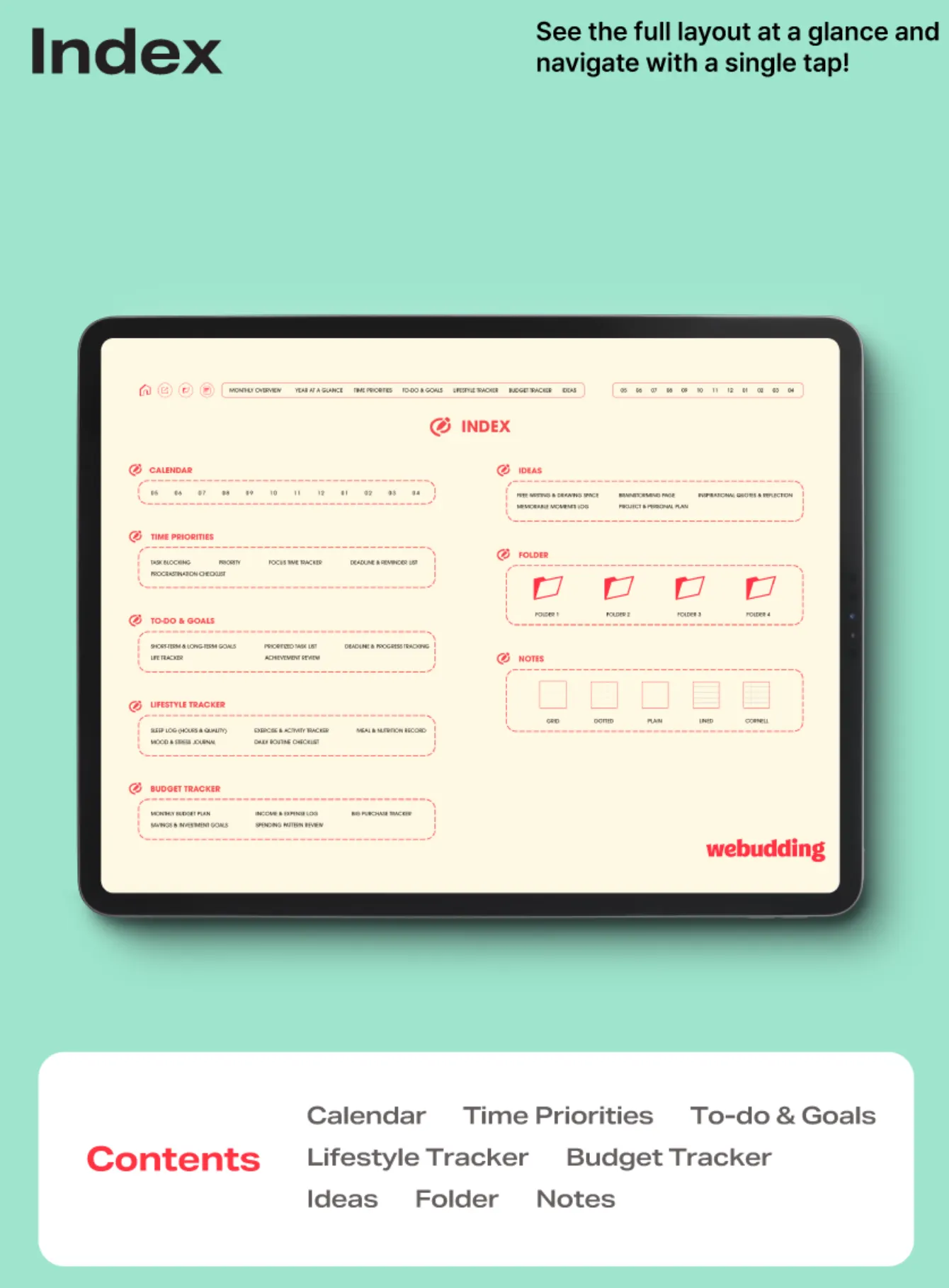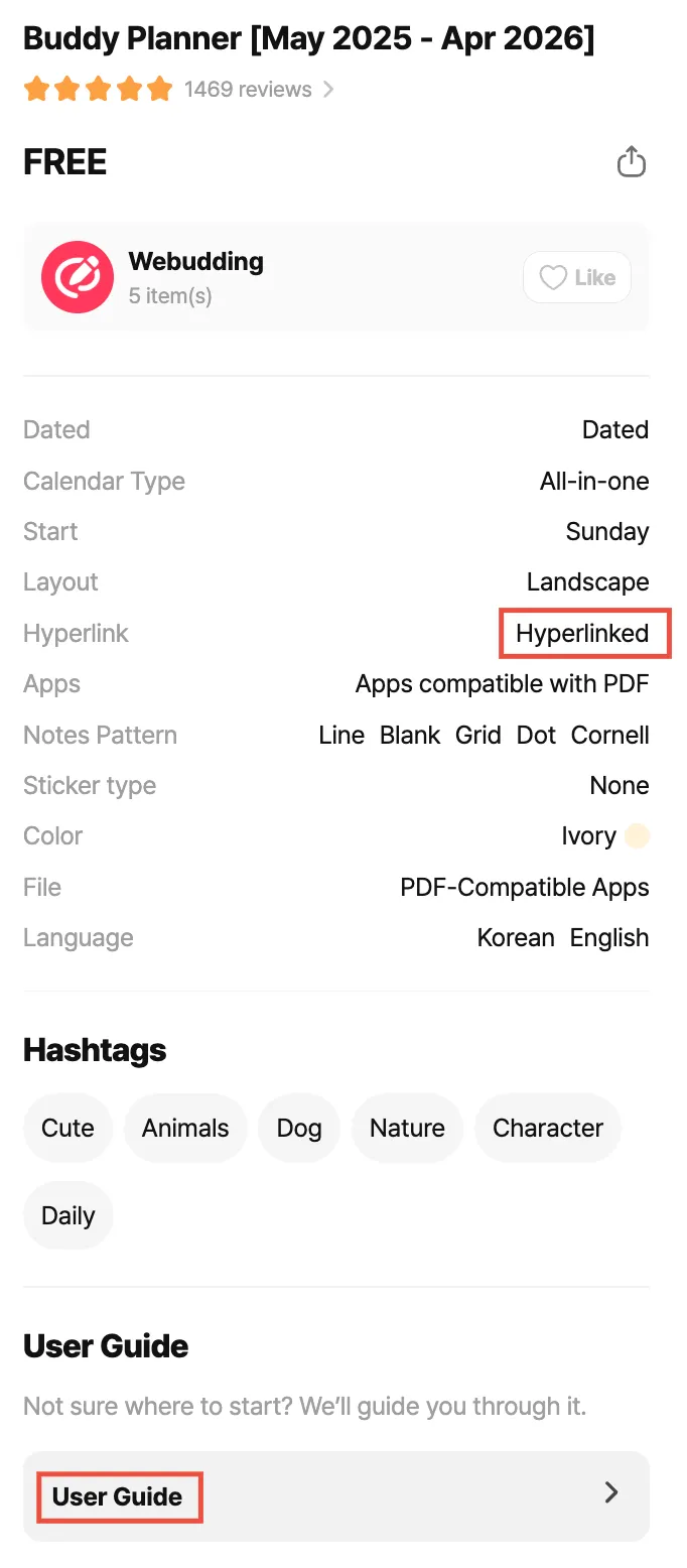 1. Check the [Product Details] on the website or the [User Guide] in the planner to see which sections are hyperlinked.