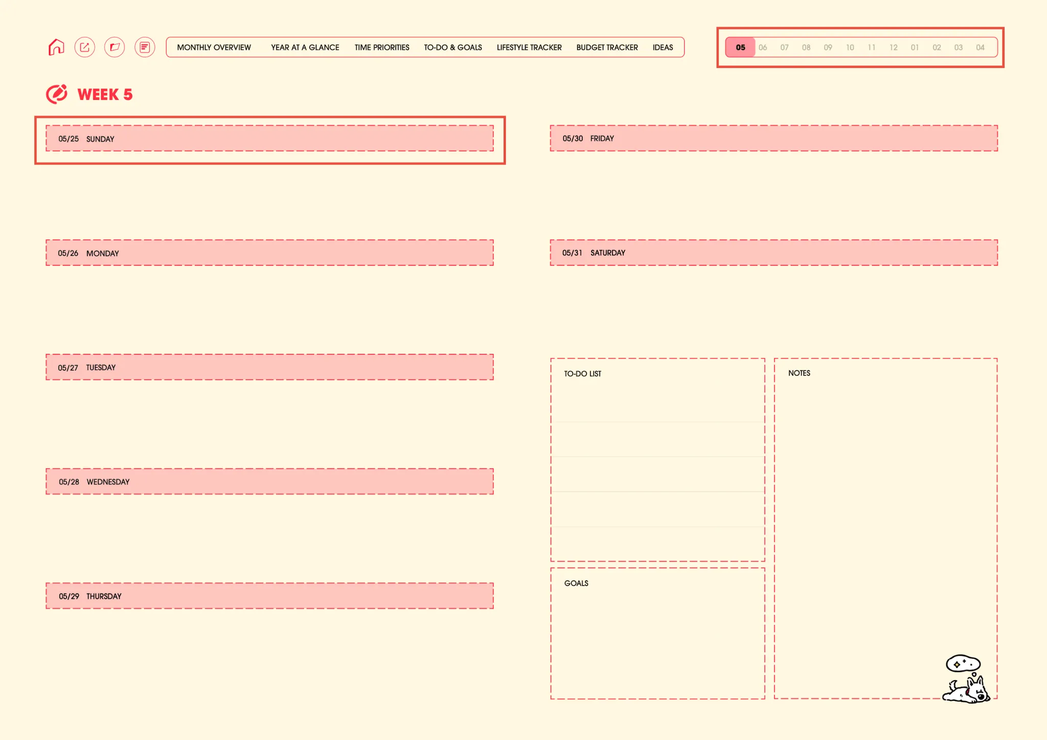 2. In most products, numbers link to the corresponding monthly, weekly, or daily pages, while texts link to the corresponding template within the planner.