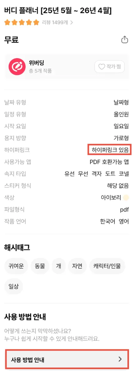 1. 위버딩의 [상품 상세 정보]나 플래너의 [사용 방법 안내]를 확인하여 어떤 섹션에 하이퍼링크가 있는지 확인하세요.
