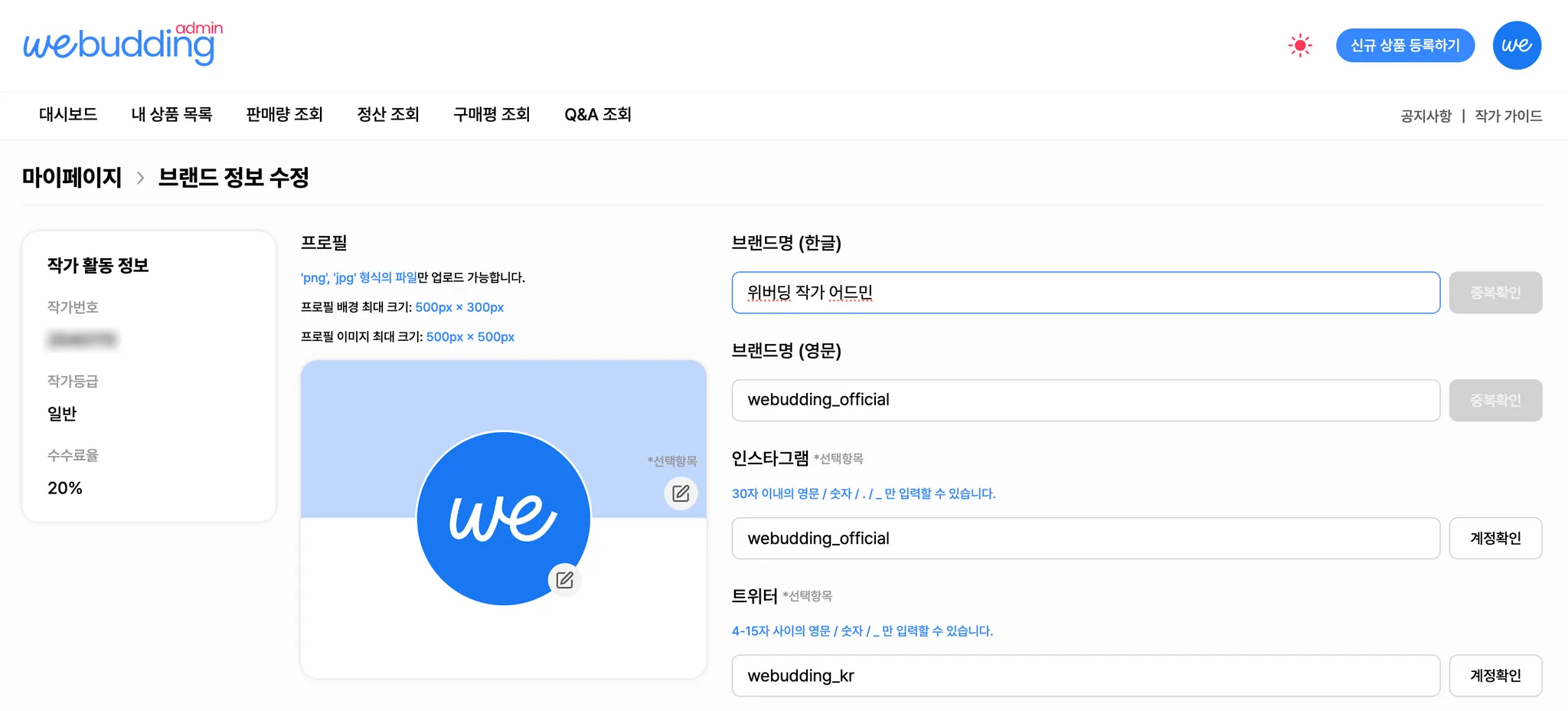 한글과 영문의 브랜드명은 꼭 통일해 주세요.