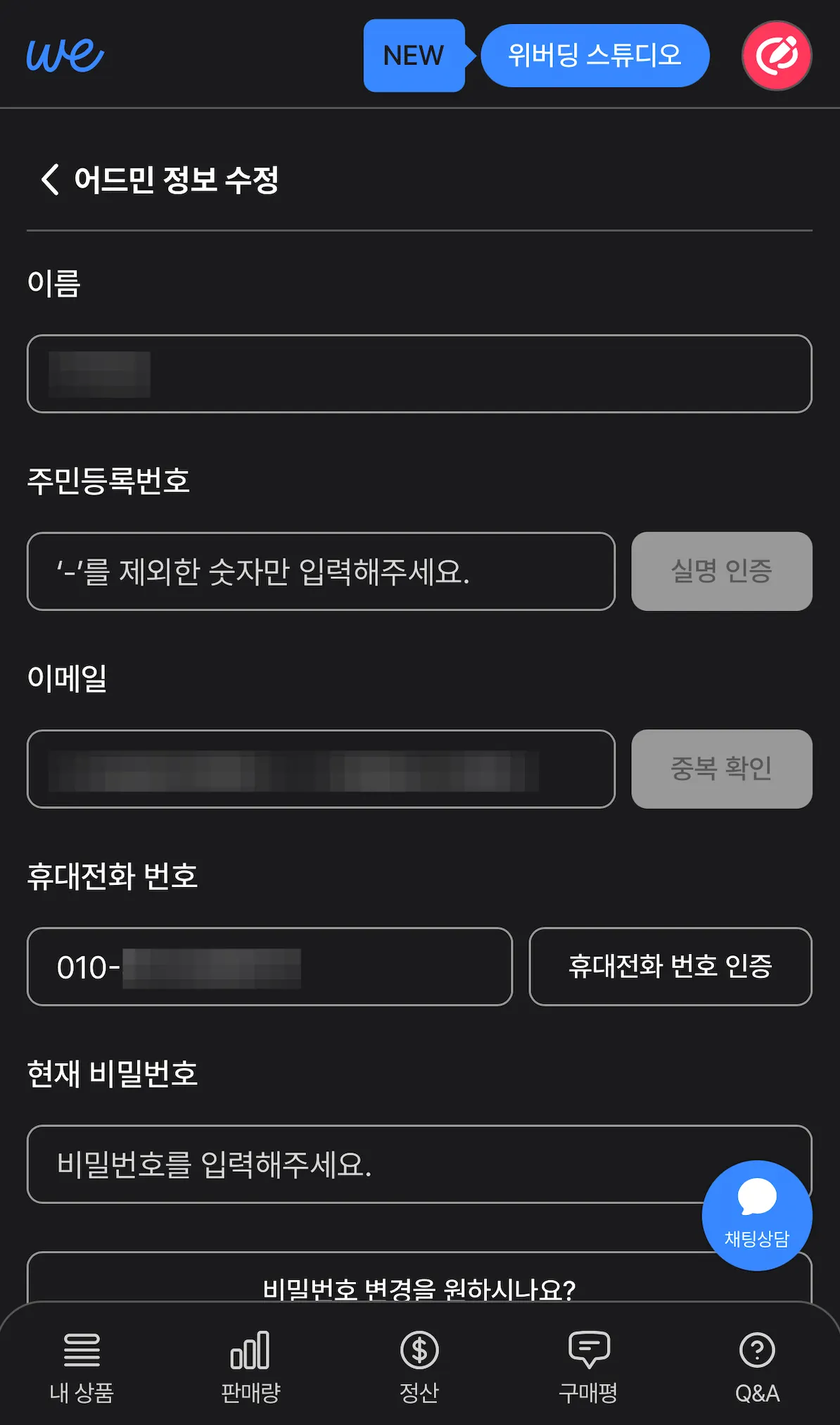 별도의 검수 과정 없이 변경된 정보로 마케팅 수신 및 정산이 진행되므로, 정보를 정확히 입력하였는지 확인 후 체크박스에 동의 표시합니다.