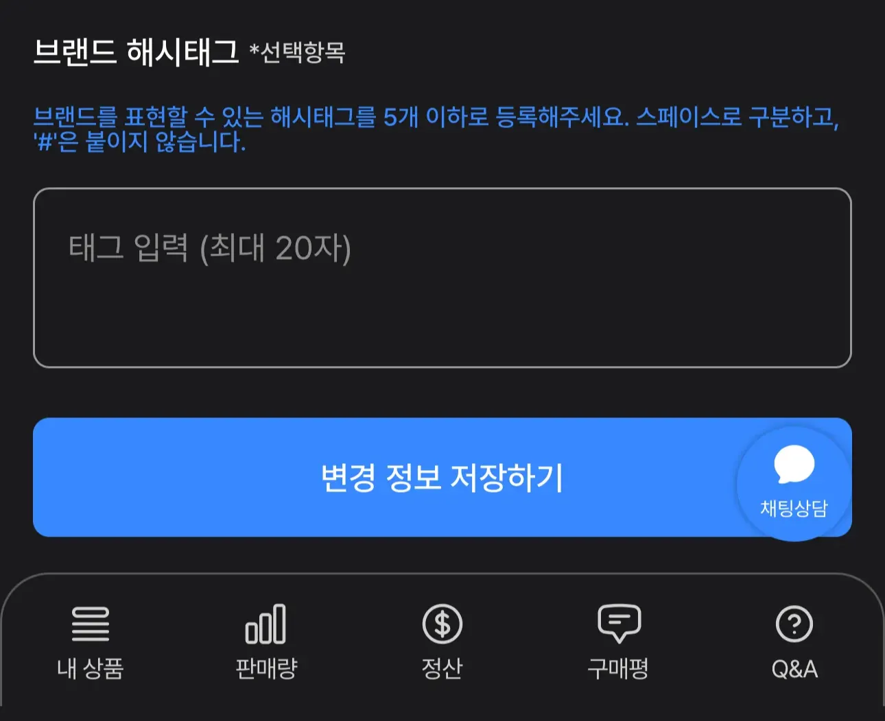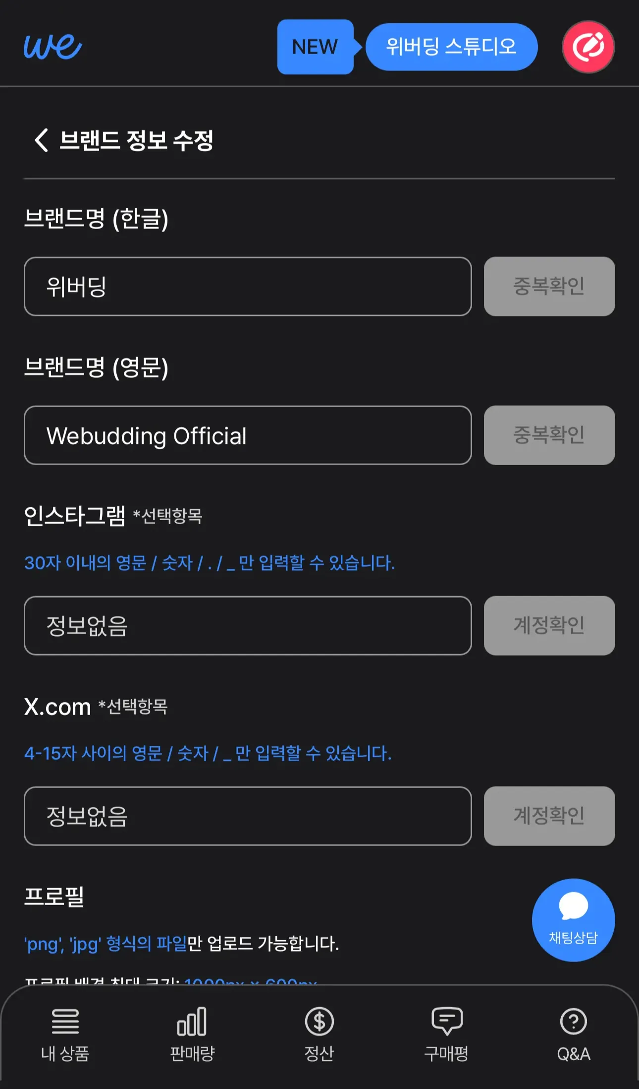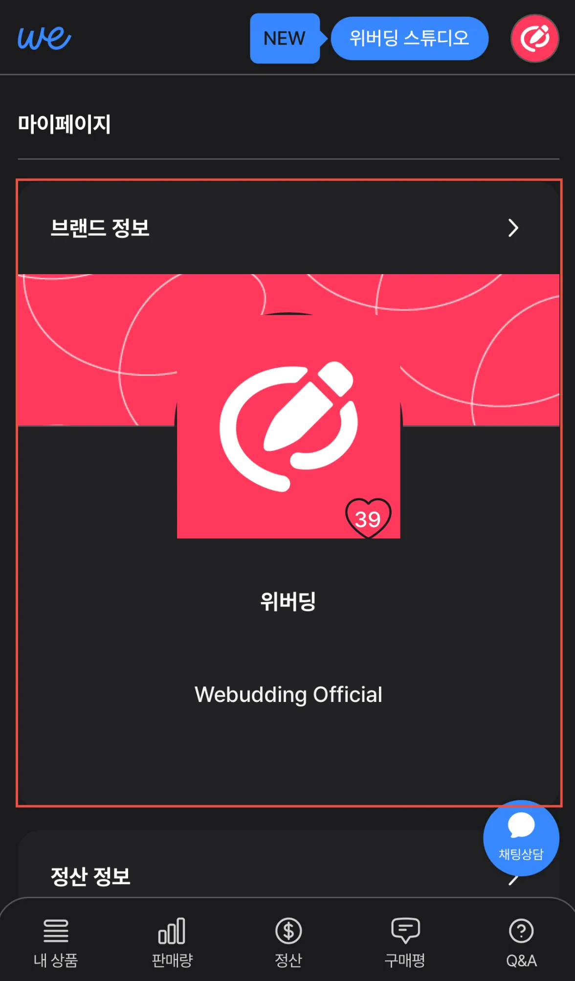 [브랜드 정보] 영역을 클릭하면, 수정 페이지로 이동합니다. 브랜드 정보의 모든 내역을 수정할 수 있습니다.