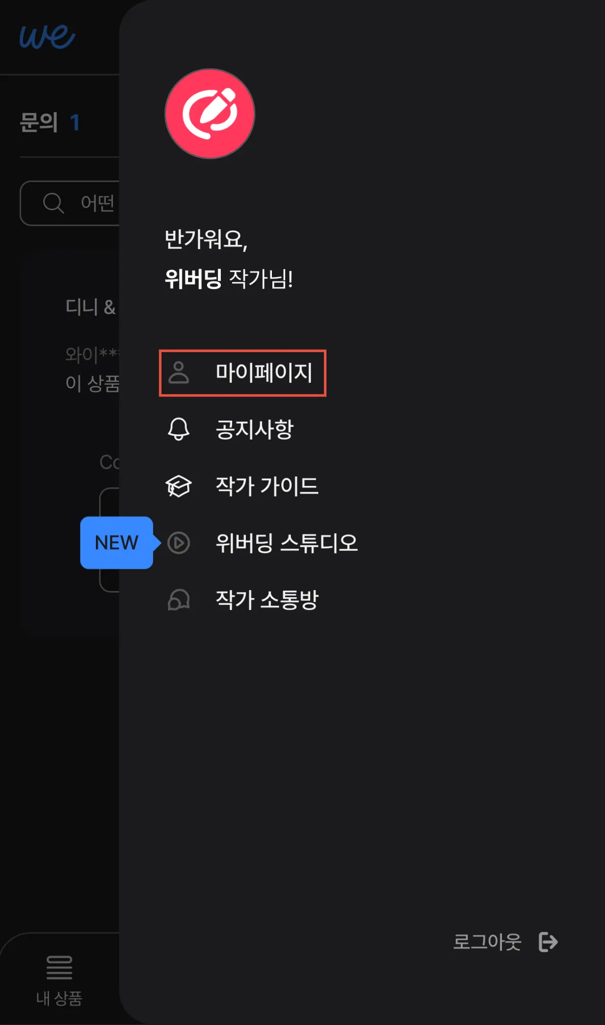 우측 상단 프로필 이미지를 클릭하면 해당 창이 나타납니다. [마이페이지]를 클릭해 이동합니다.
