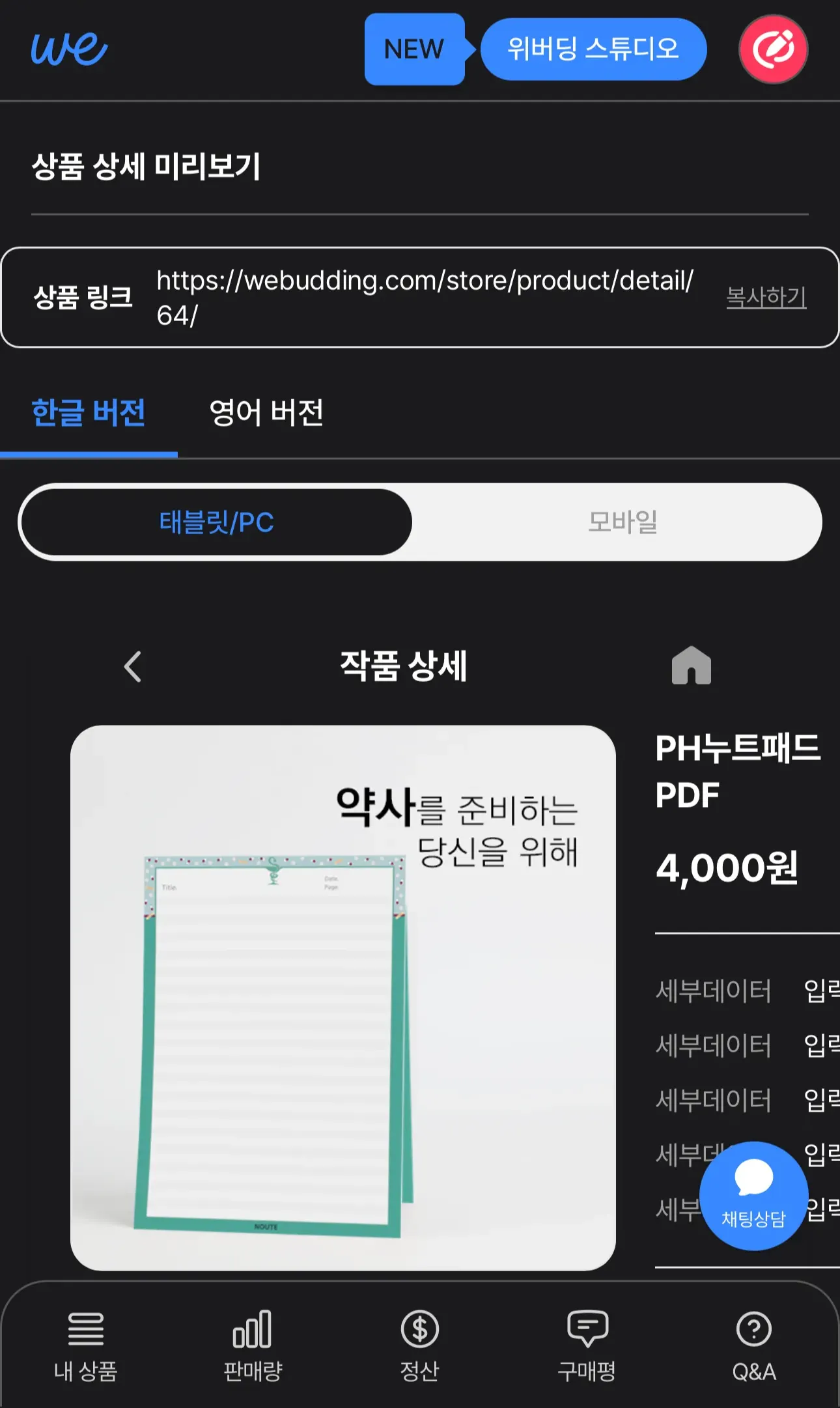 판매량이나 정산을 조회하고 싶으시거나, 리뷰를 확인하고 싶으시다면 앱으로 확인해보세요!