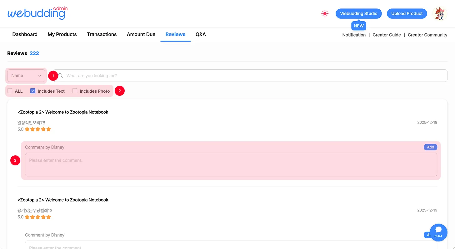You can view customer reviews in the Creator Admin and leave replies to communicate with your customers.