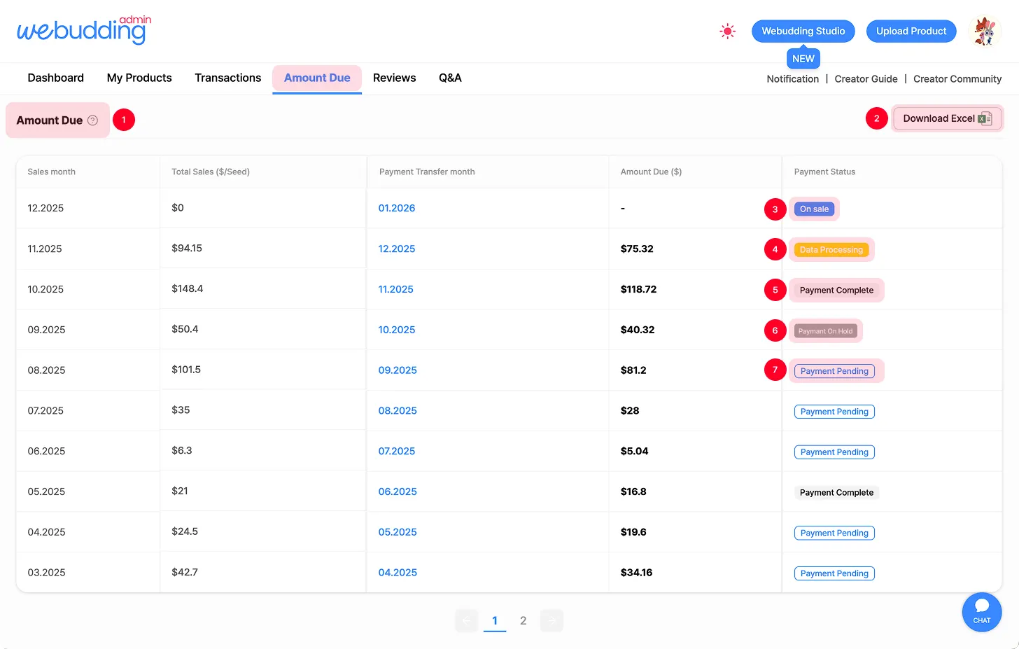 The image below is for reference only. The actual settlement amounts will be displayed in each creator’s admin dashboard.