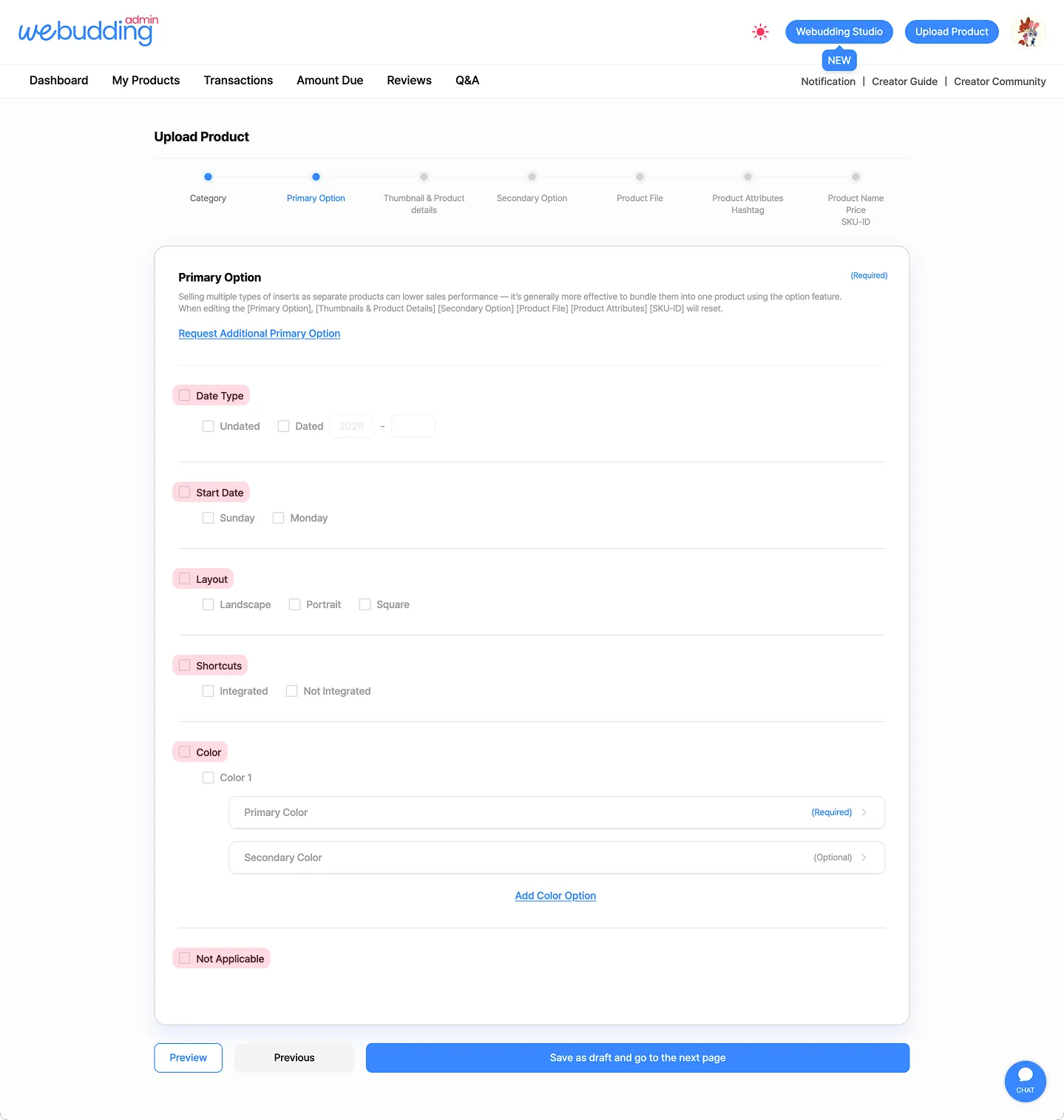 This guide is about the “Primary Option” feature, which allows you to set multiple options for a single product during the new product registration process and upload different thumbnails and product details for each option.