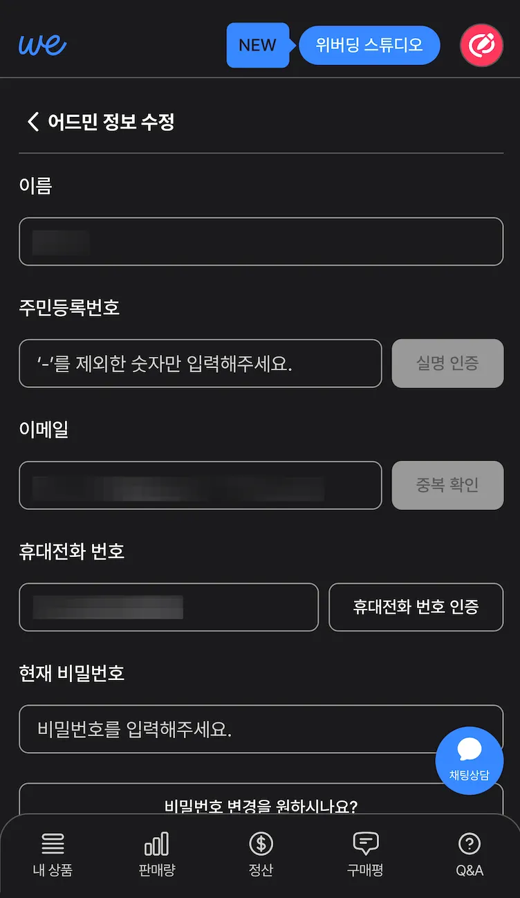 별도의 검수 과정 없이 변경된 정보로 정산이 진행되므로, 정보를 정확히 입력하였는지 확인 후 체크박스에 동의 표시합니다.