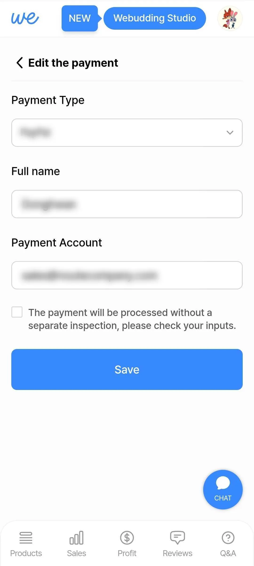 Click the [Payment Information] section to go to the edit page, where you can modify all settlement details.