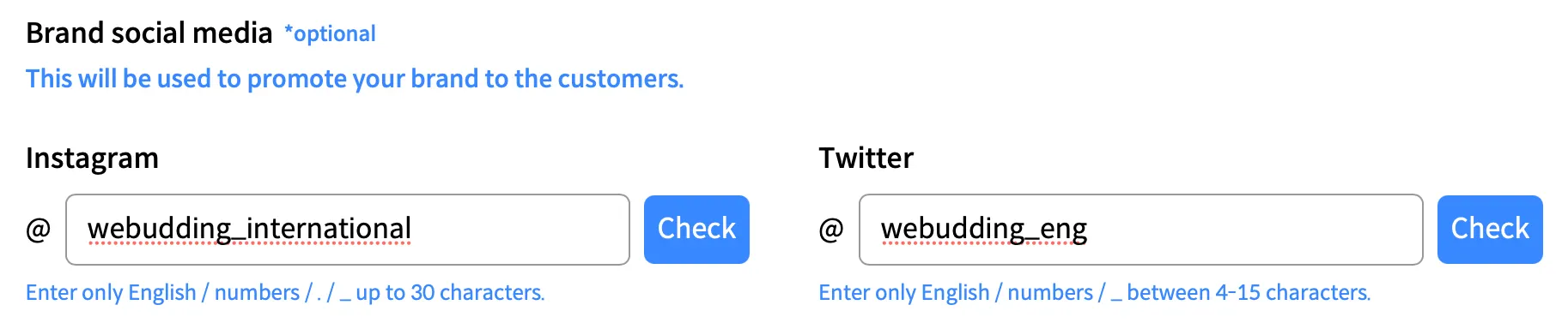 Social media accounts you entered will be used when introducing and promoting your brand!