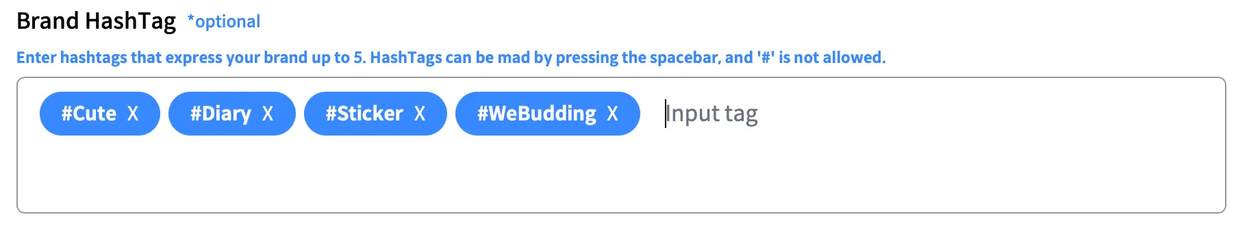 âïž Brand hashtags can be entered up to 5. â#â is automatically added when you enter the hashtags.