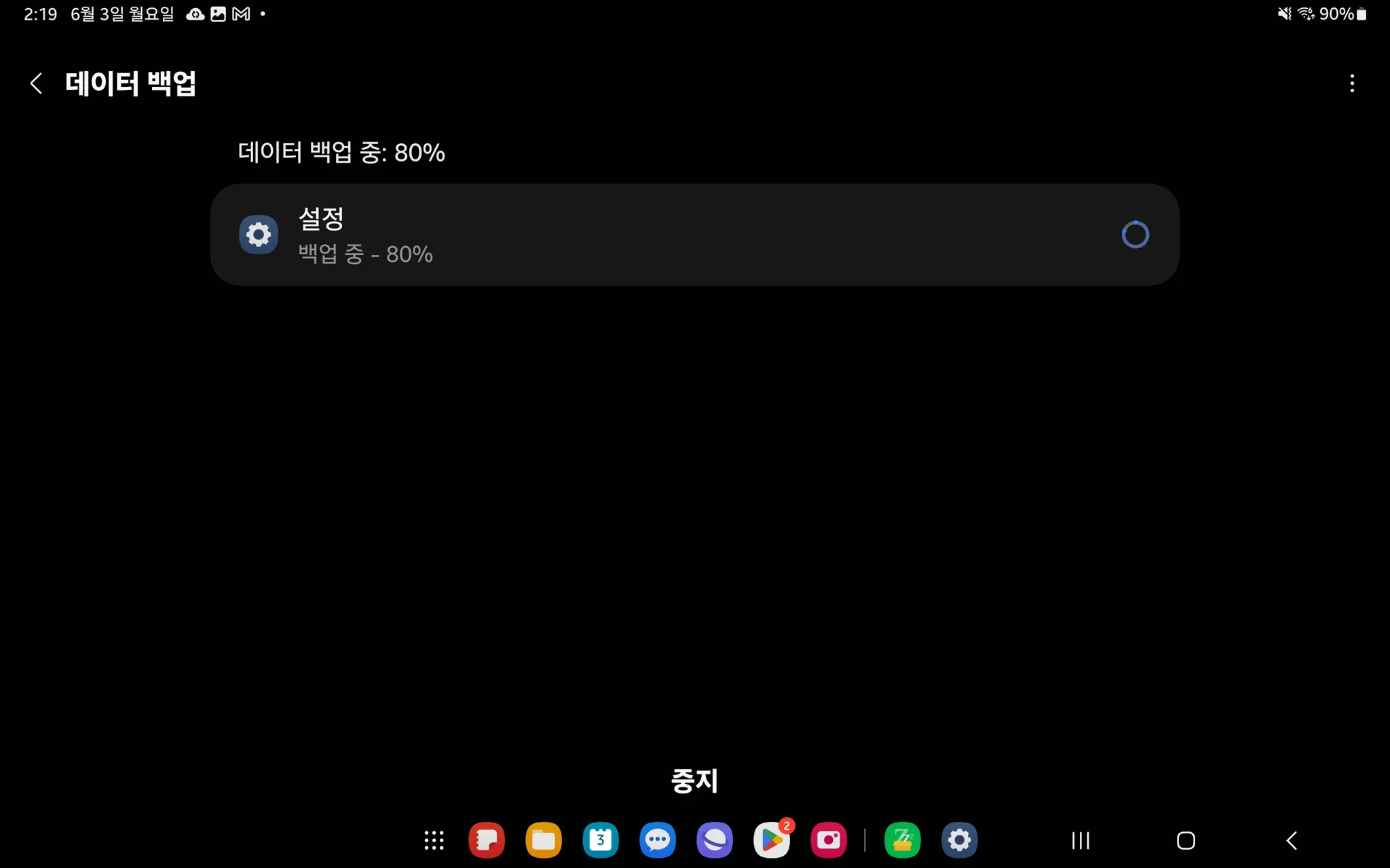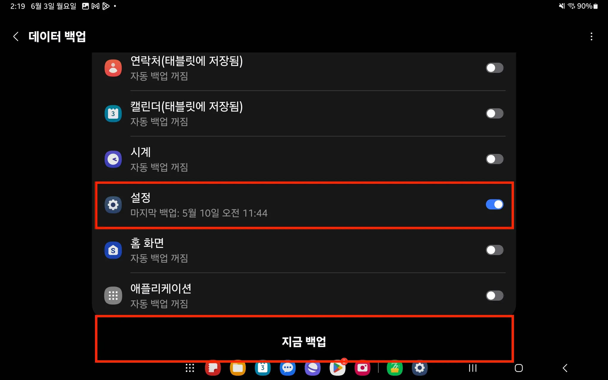 12. [설정] 클릭 → [지금 백업] 클릭 → 백업 후 [완료] 클릭