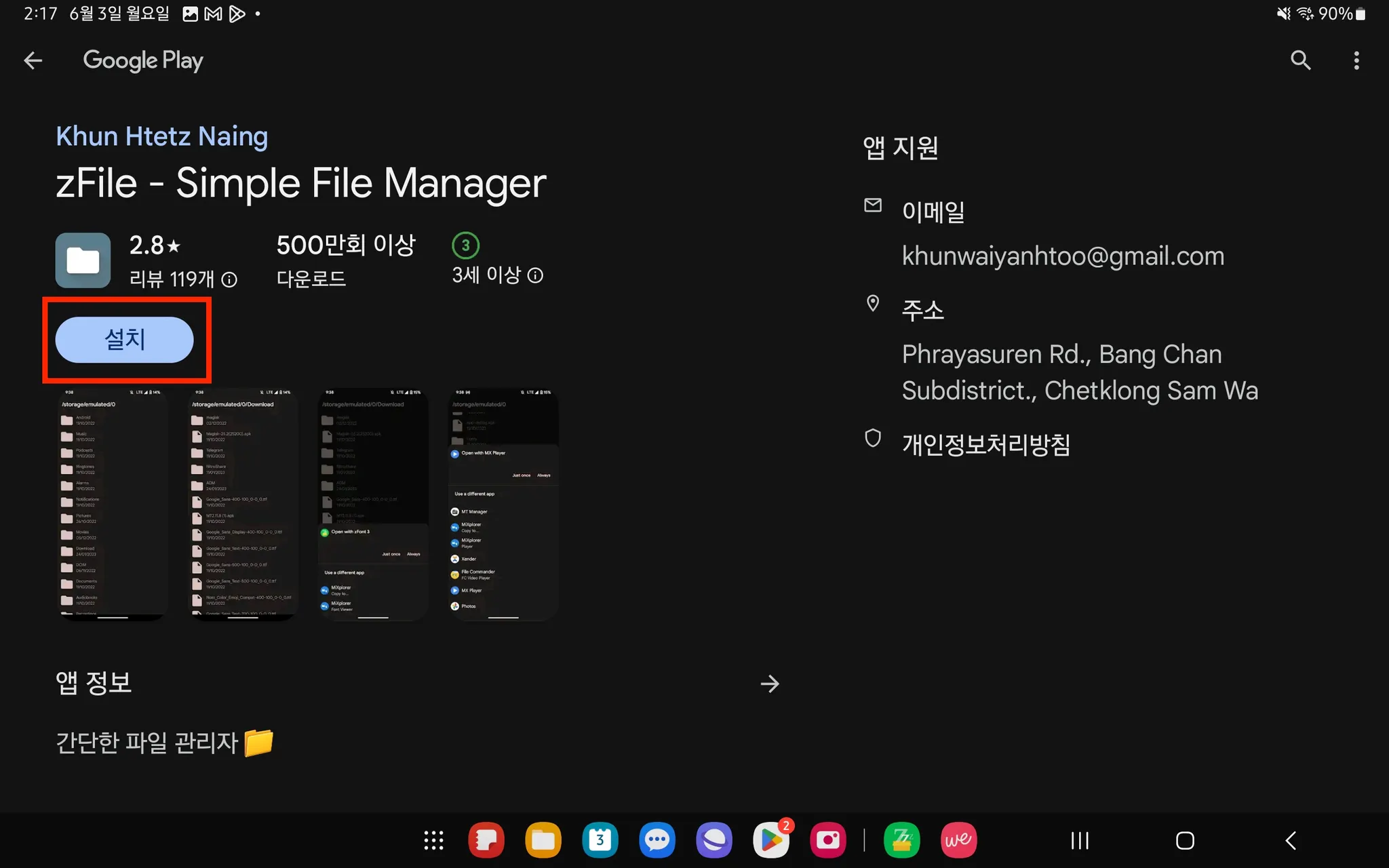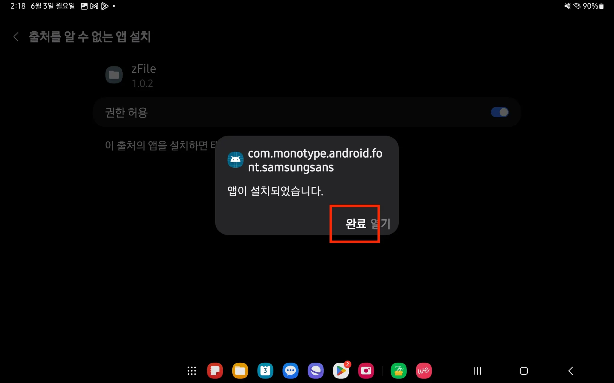 7. [Google Play 스토어] → [zFile] 설치 → [zFont 3] 로 돌아와서 다시 1번 클릭