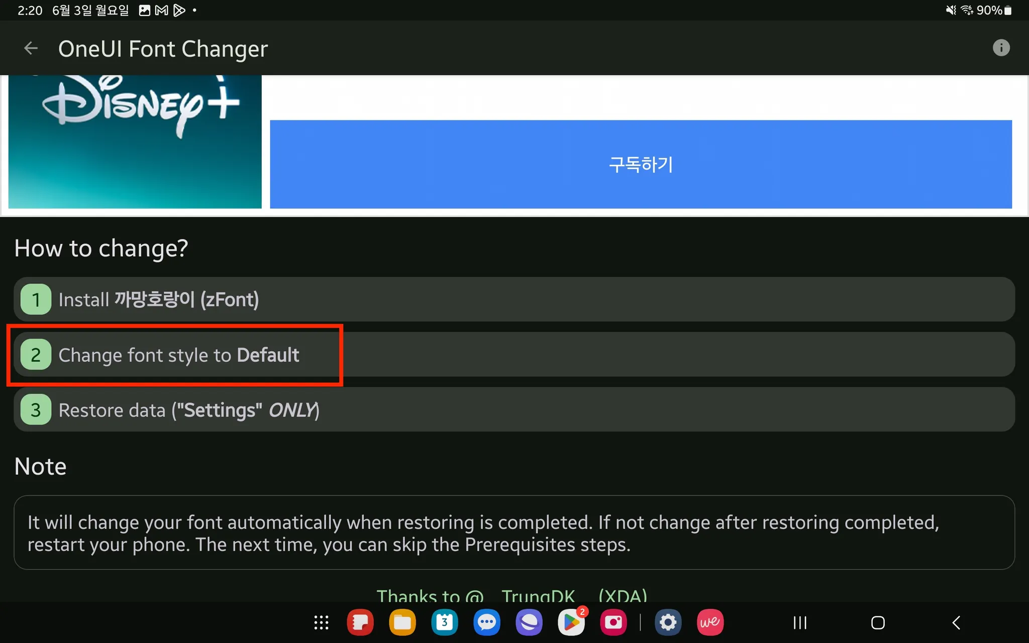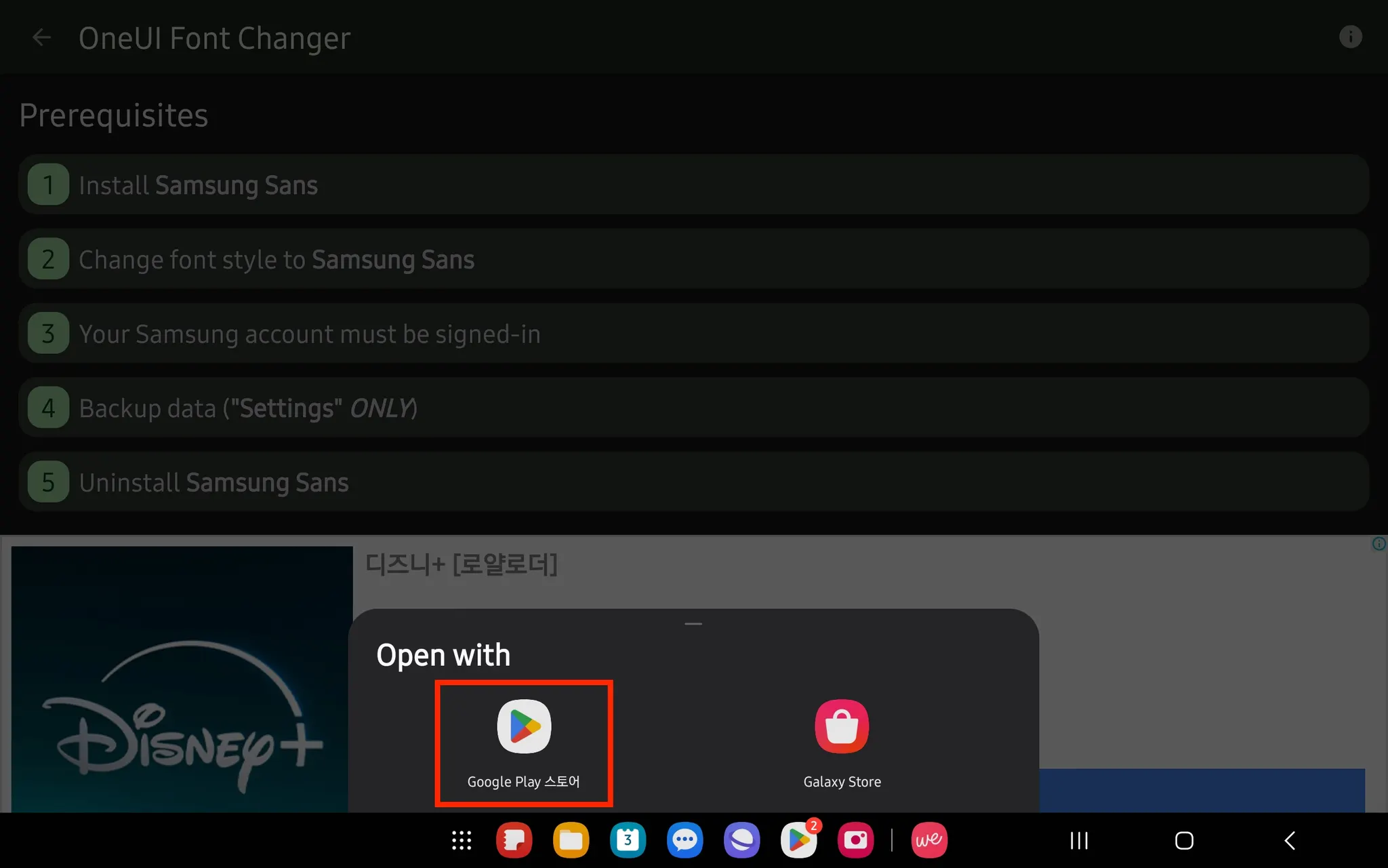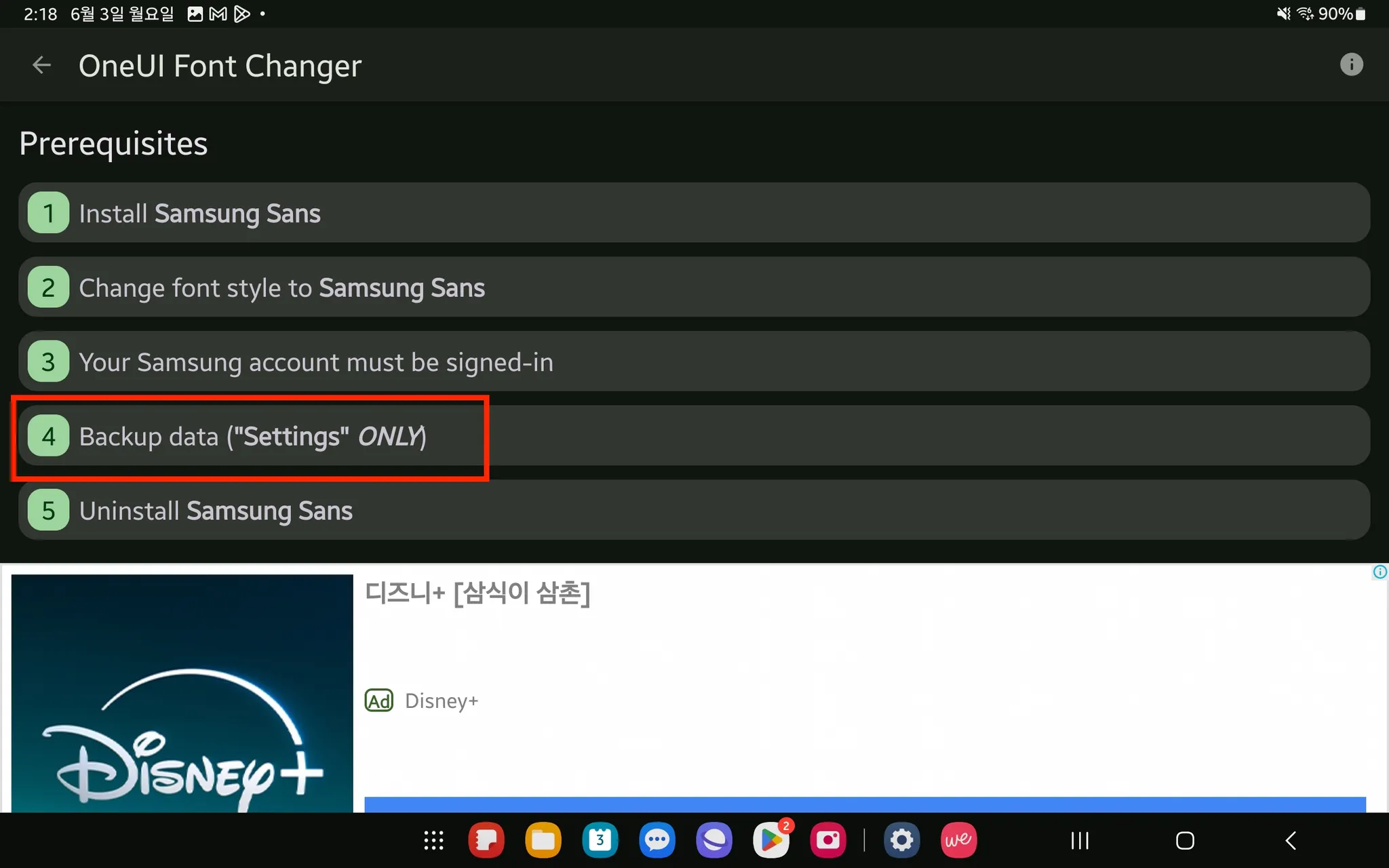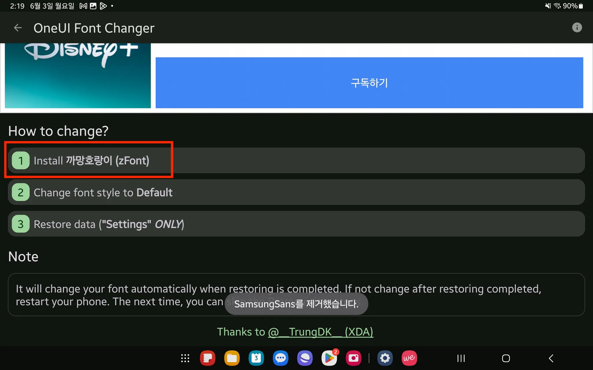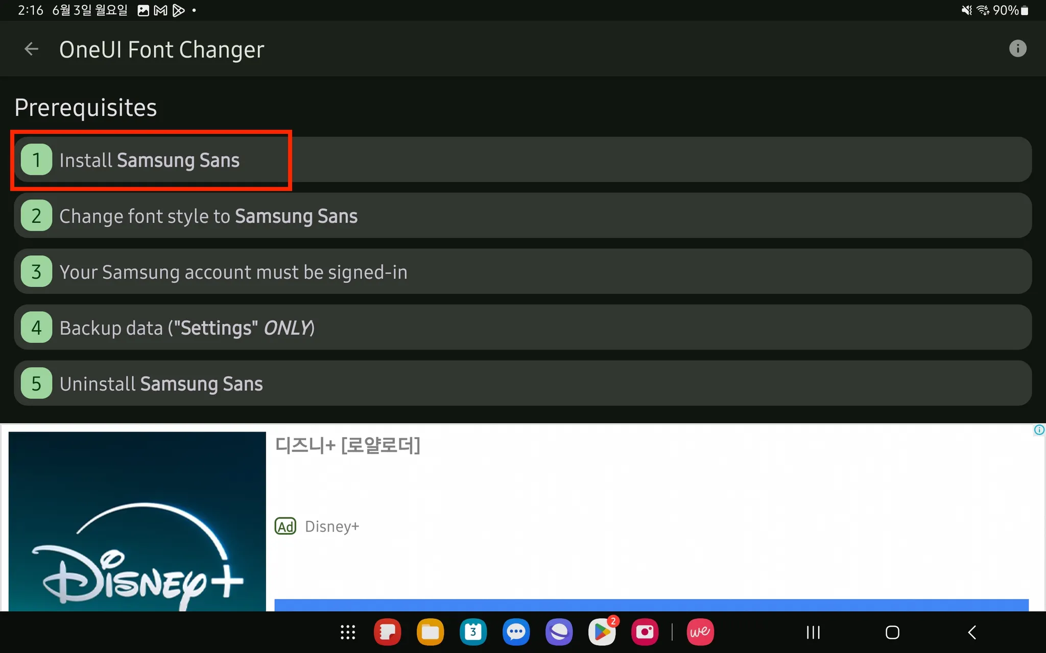 2번 [Change font style to Samsung Sans] 를 클릭해 주세요.