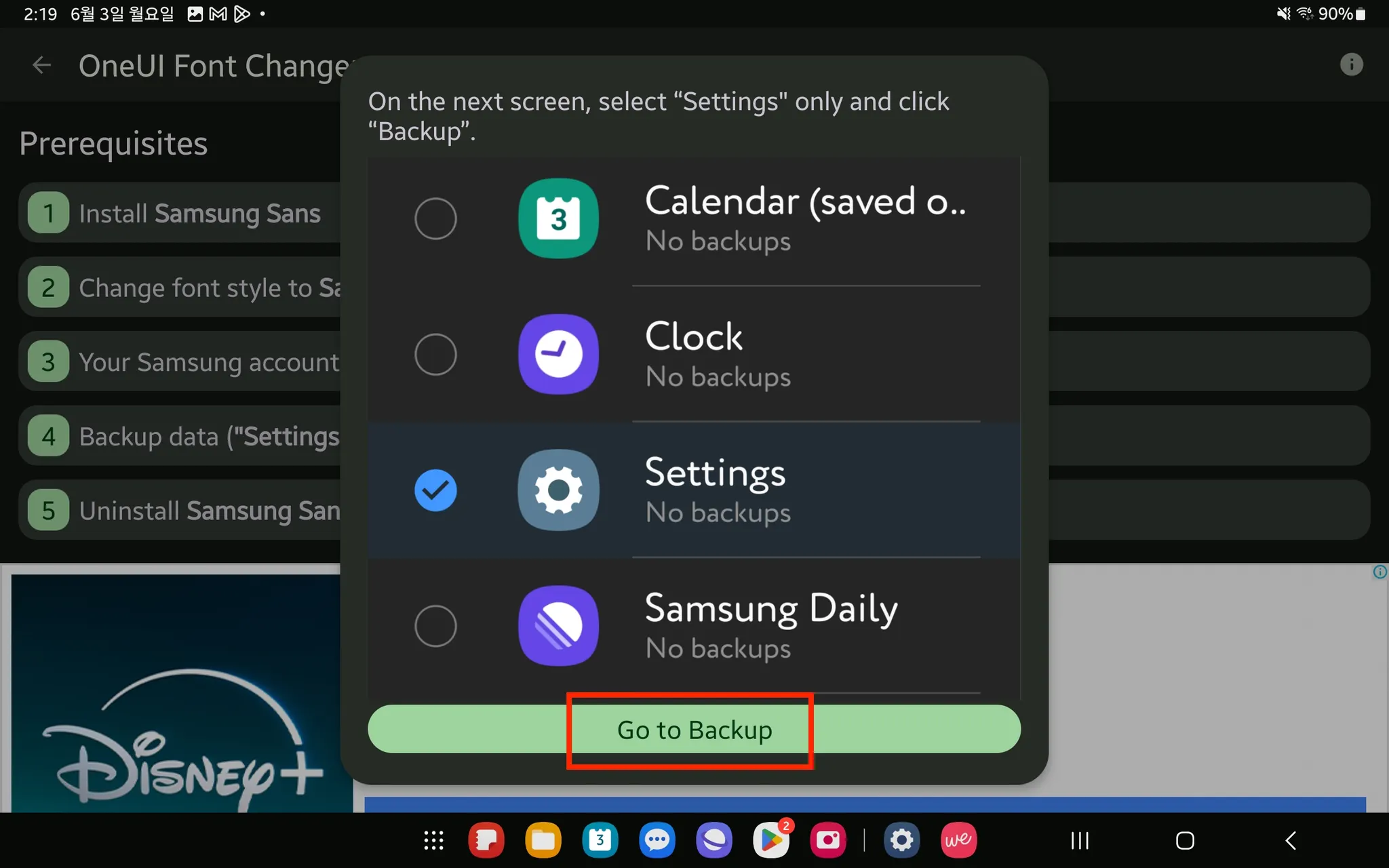 11. 4번 [Backup date (”Settings” ONLY)] 클릭 → [Go to Backup] 클릭