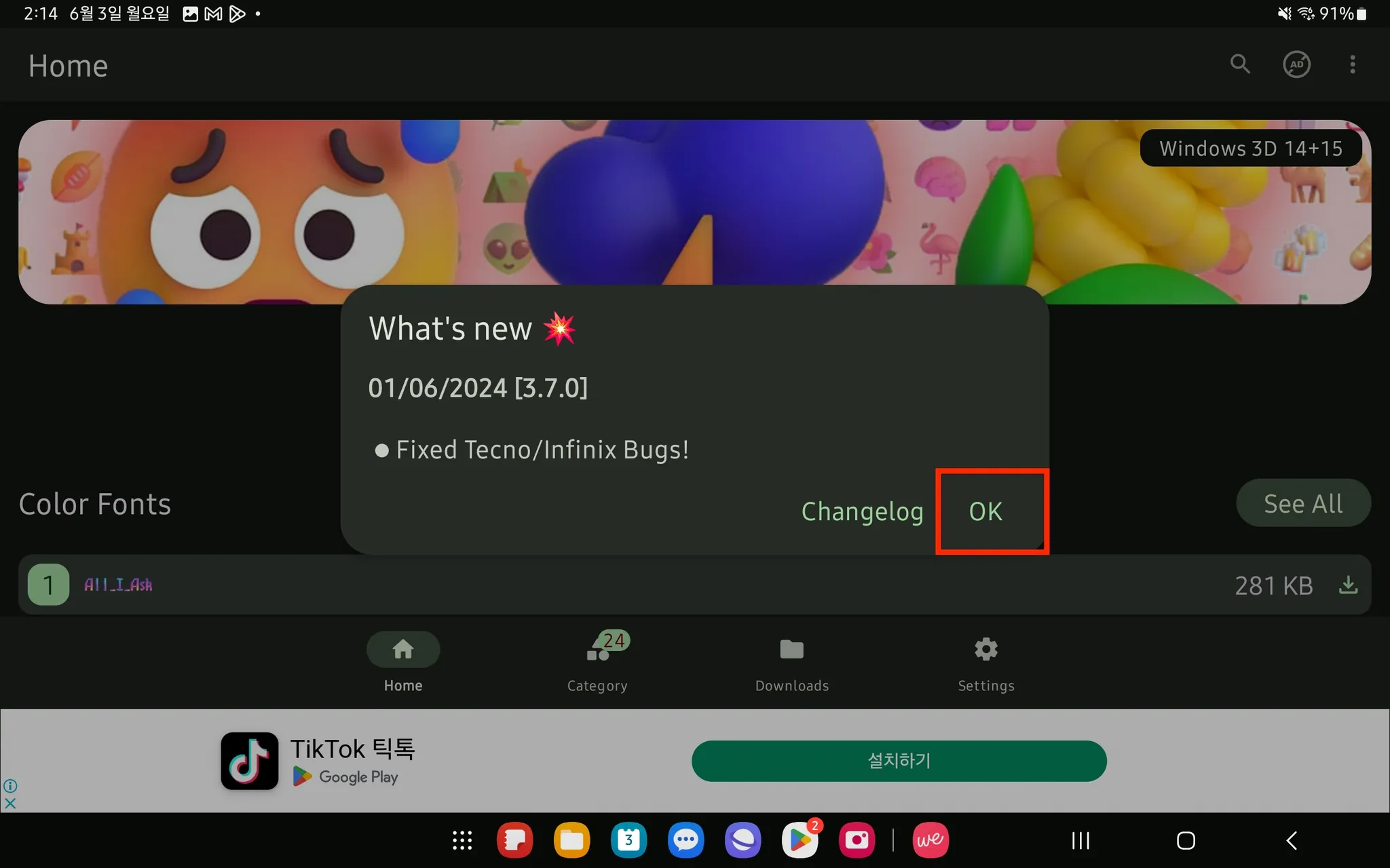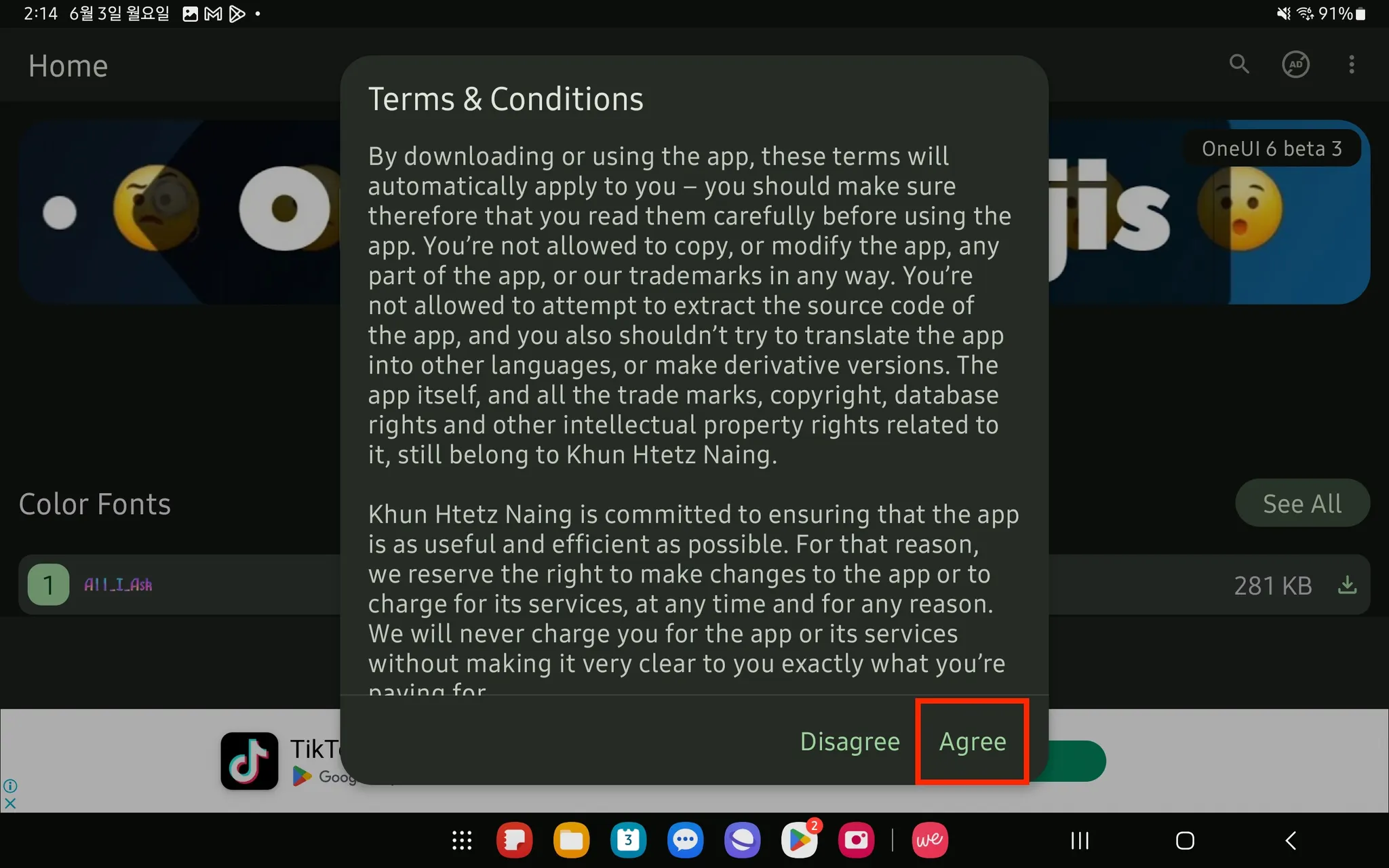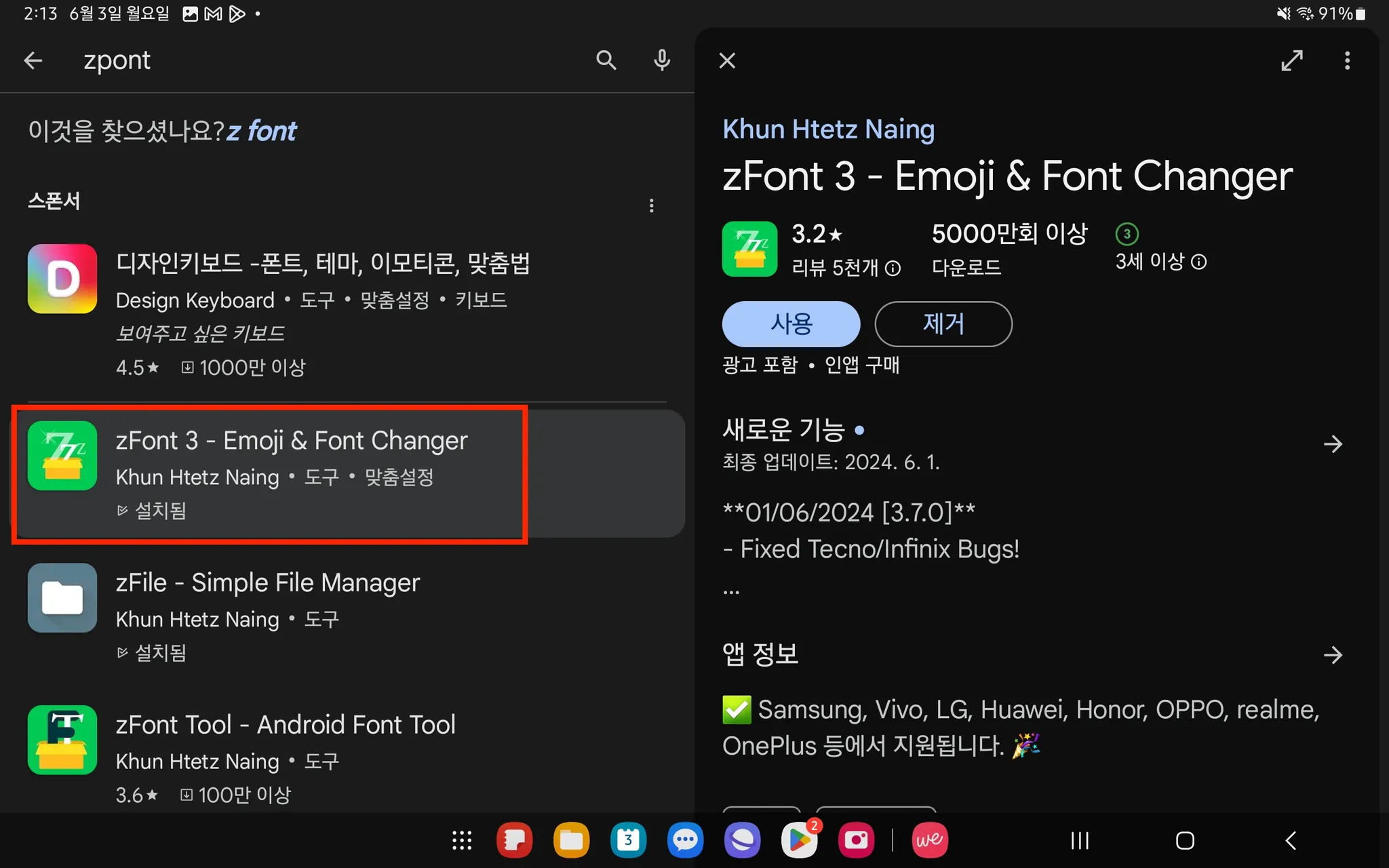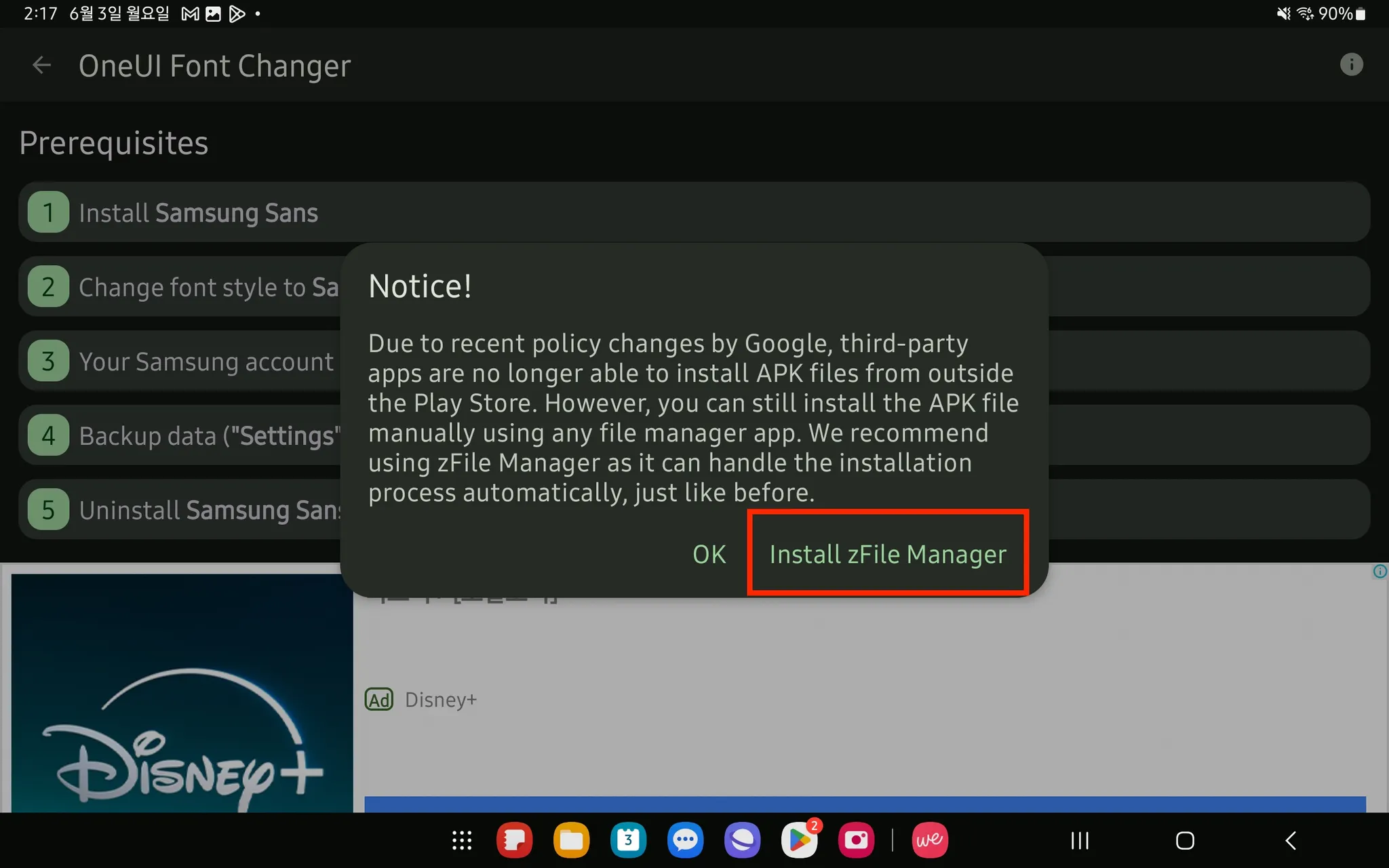 2. [zFont 3] 앱을 설치 → [Agree] → [OK]