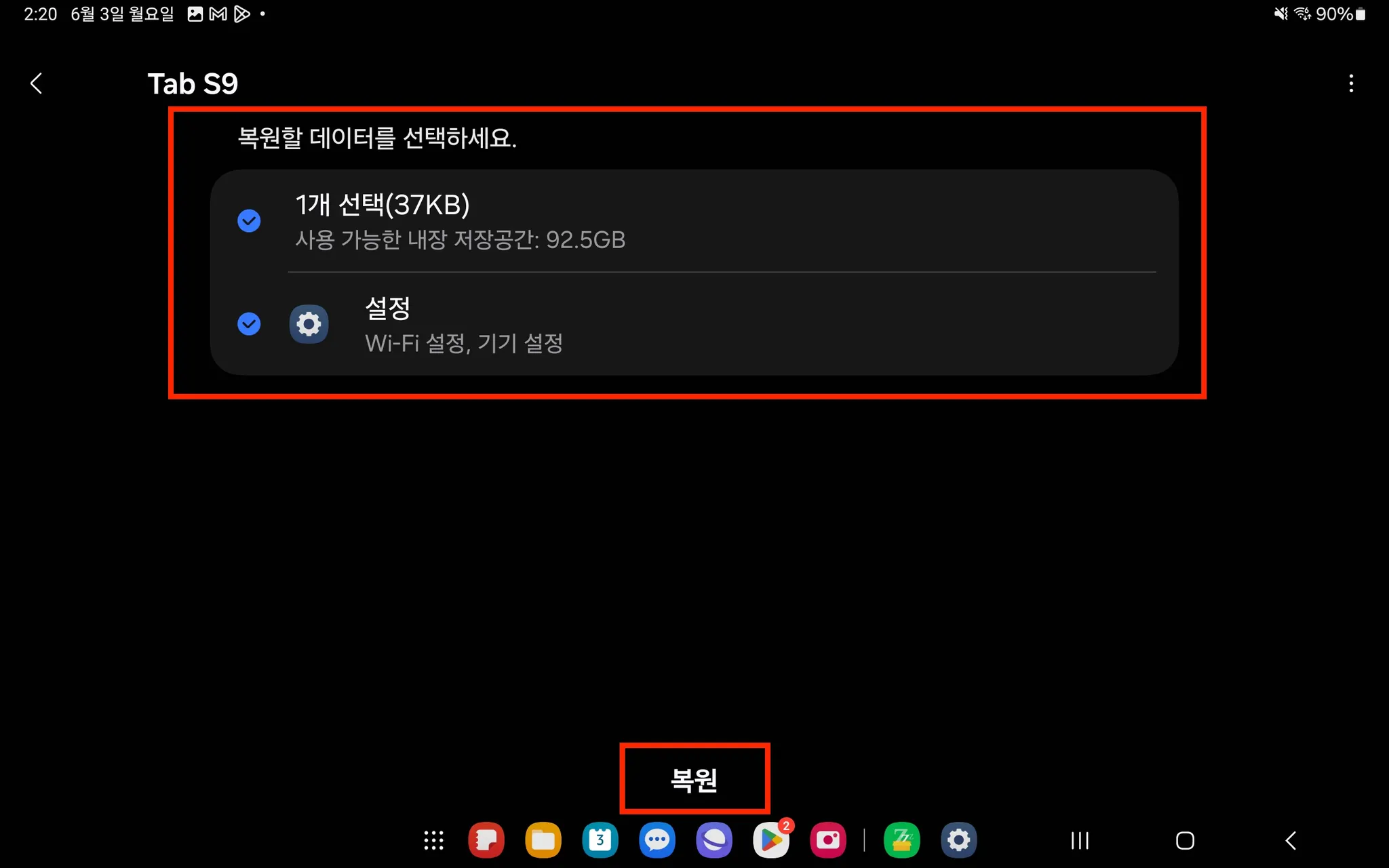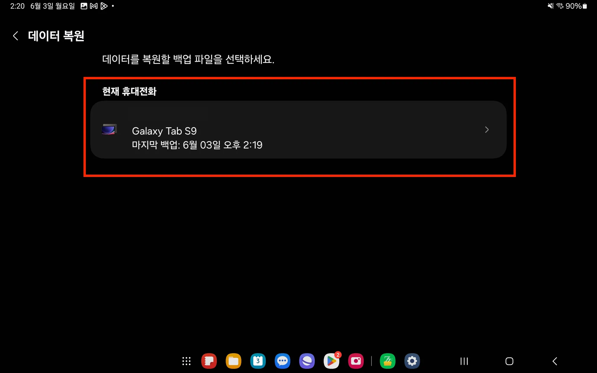 17. [백업 기기 선택] → [복원] 선택