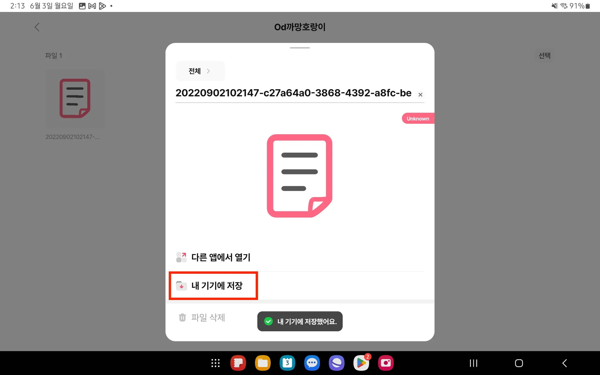 1. 구매한 폰트 파일을 한 번 클릭한 다음, [내 기기에 저장]를 선택해 저장해 주세요.