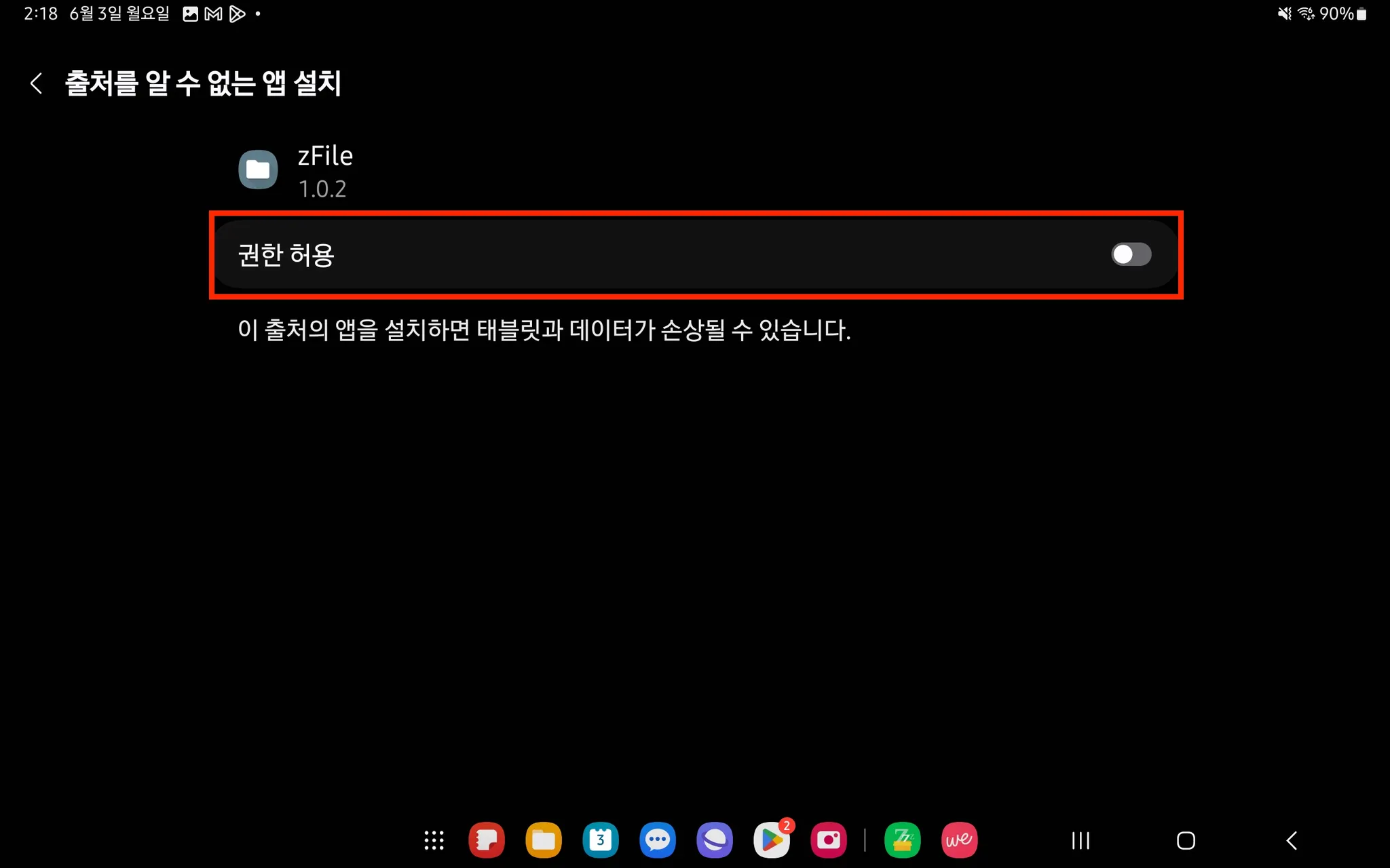 8. [설정] 클릭 → 권한 설정 필요(해당 과정이 없고, 바로 설치할 수 있습니다.)