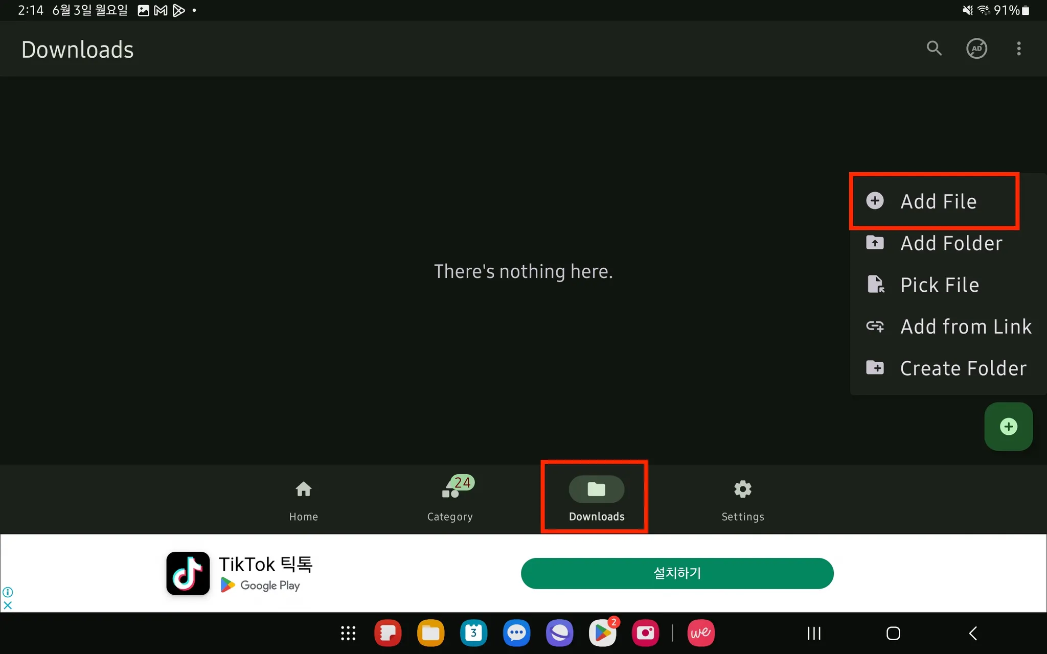 3. [Downloads] → 오른쪽 하단 + 버튼 클릭 → Add File 클릭