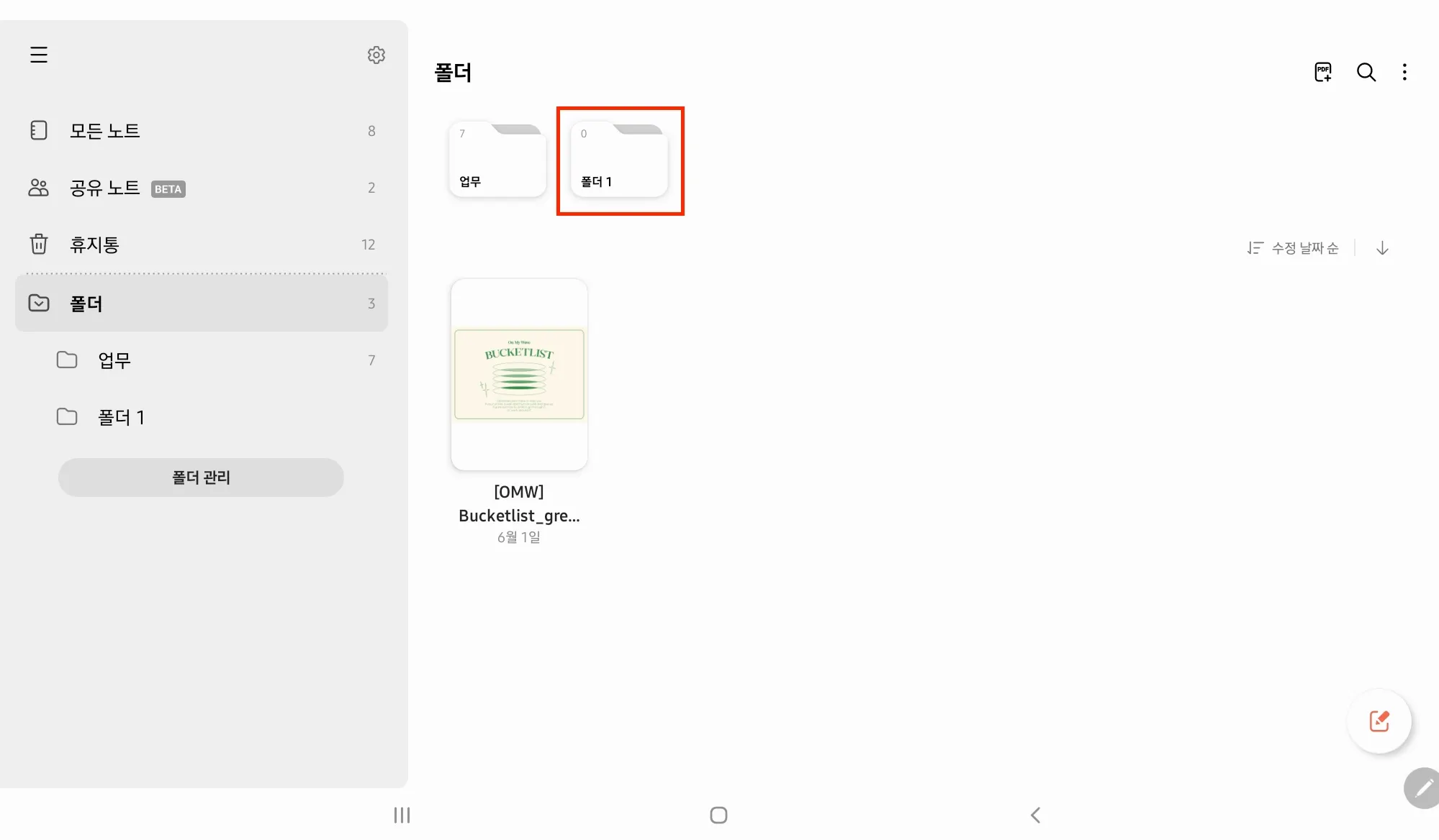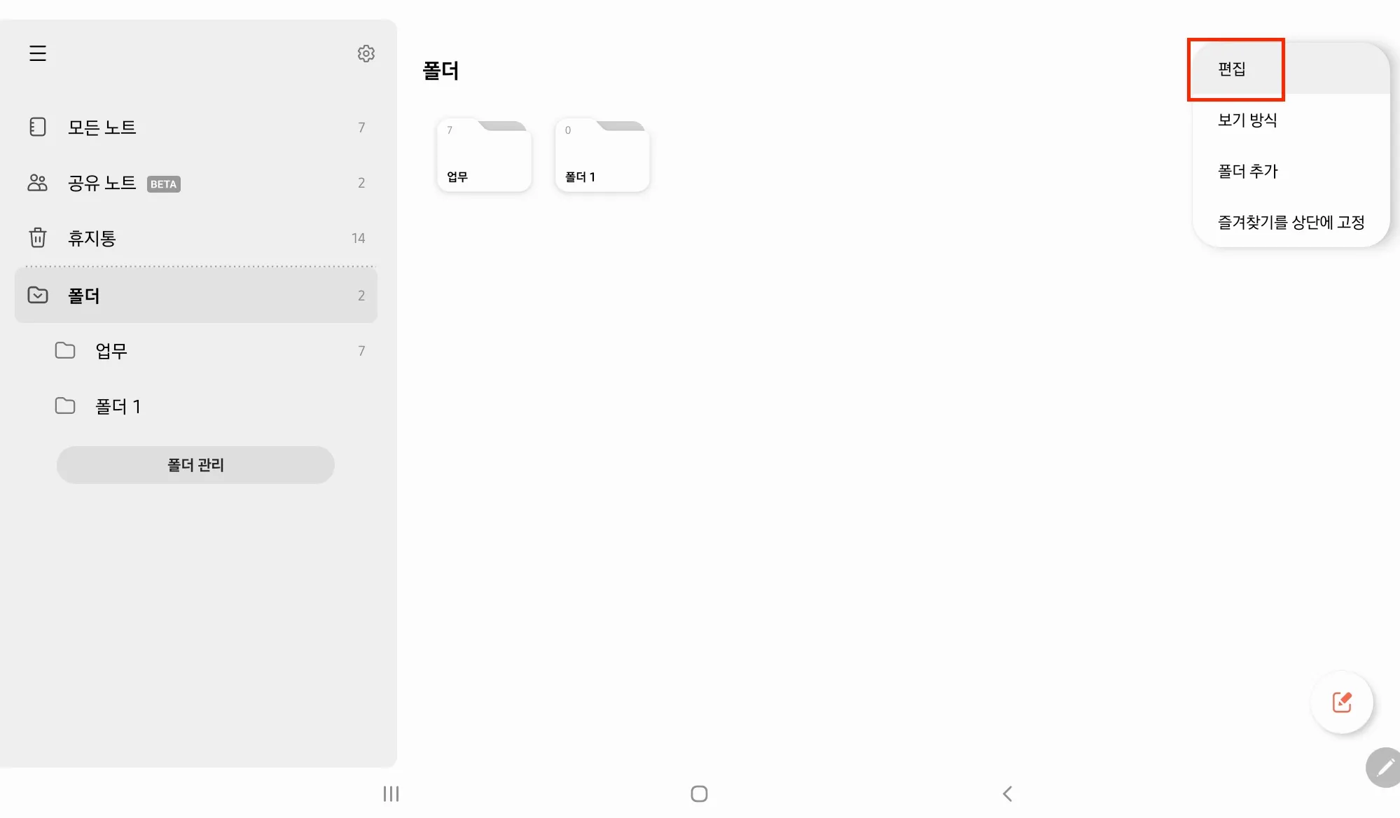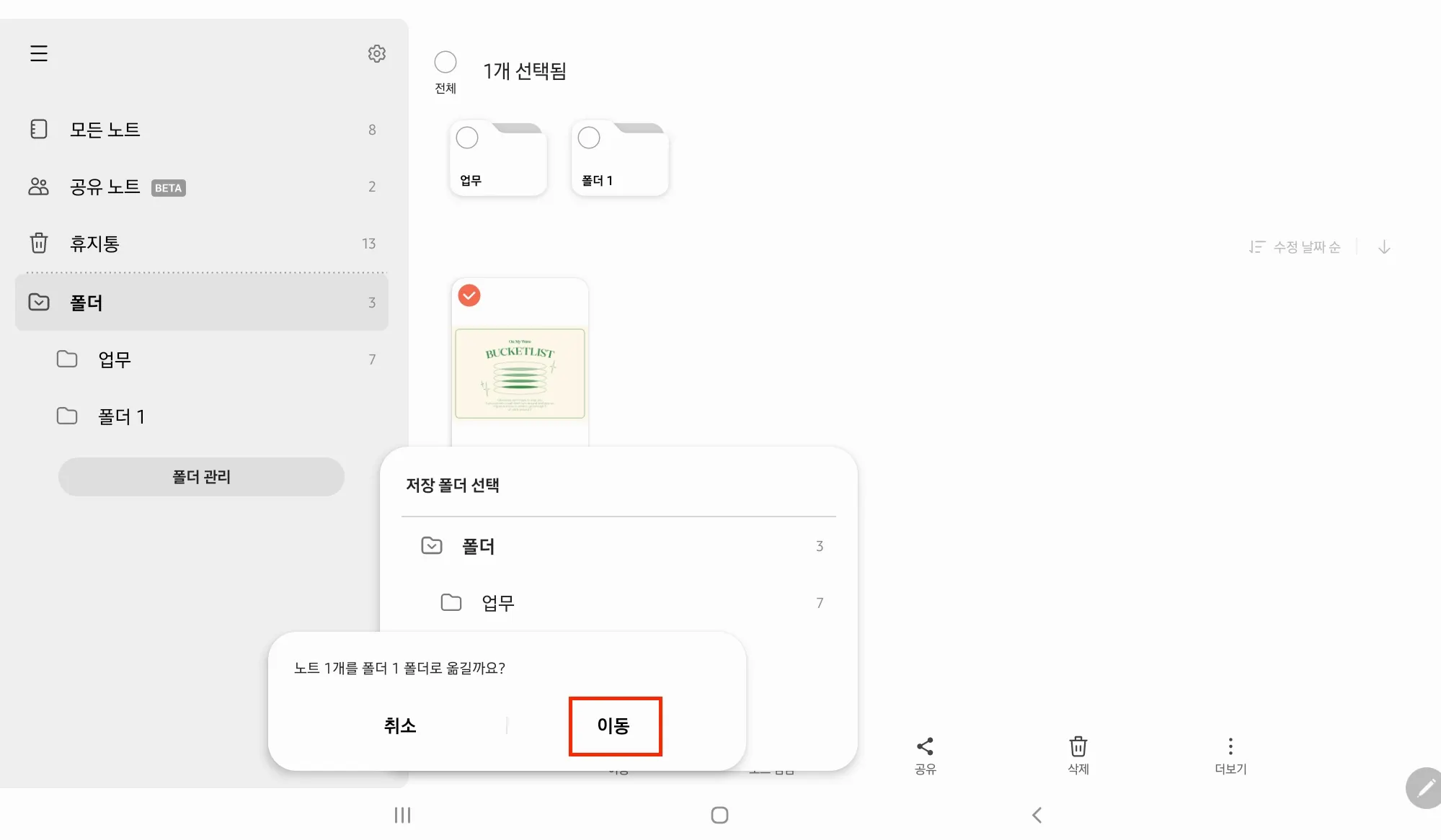 01. 오른쪽 상단 [옵션 더보기] 점 세개 클릭 → 편집 → 속지 선택 → 폴더 선택 → 이동