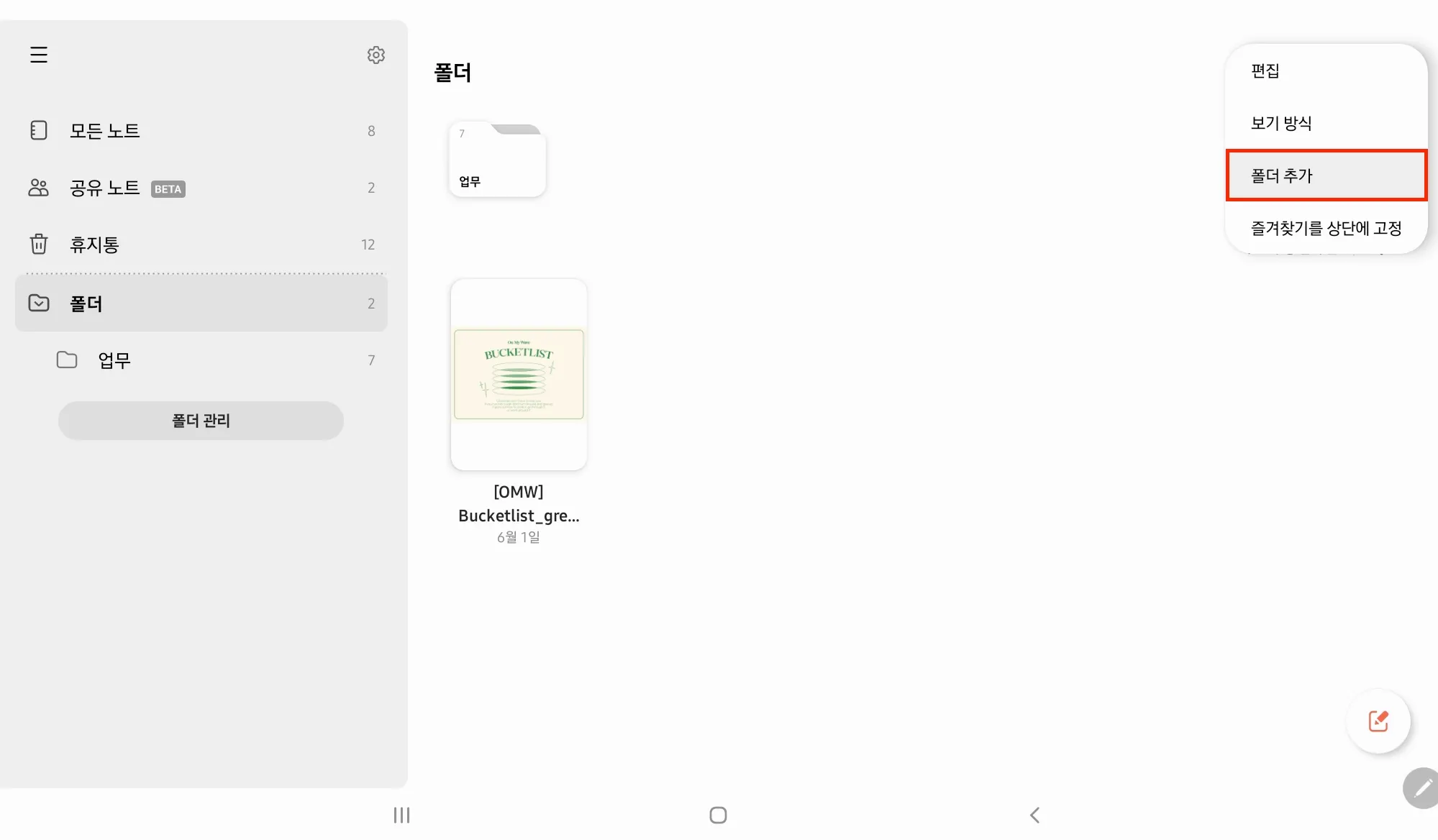 01. 오른쪽 상단 [옵션 더보기] 점 세개 클릭 → 폴더 추가 클릭