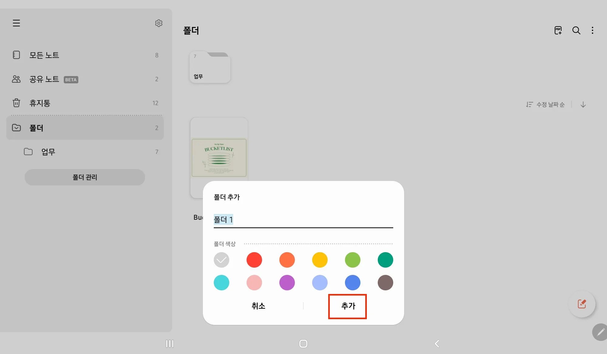 02. 폴더 명 / 폴더 색상 선택 → 추가