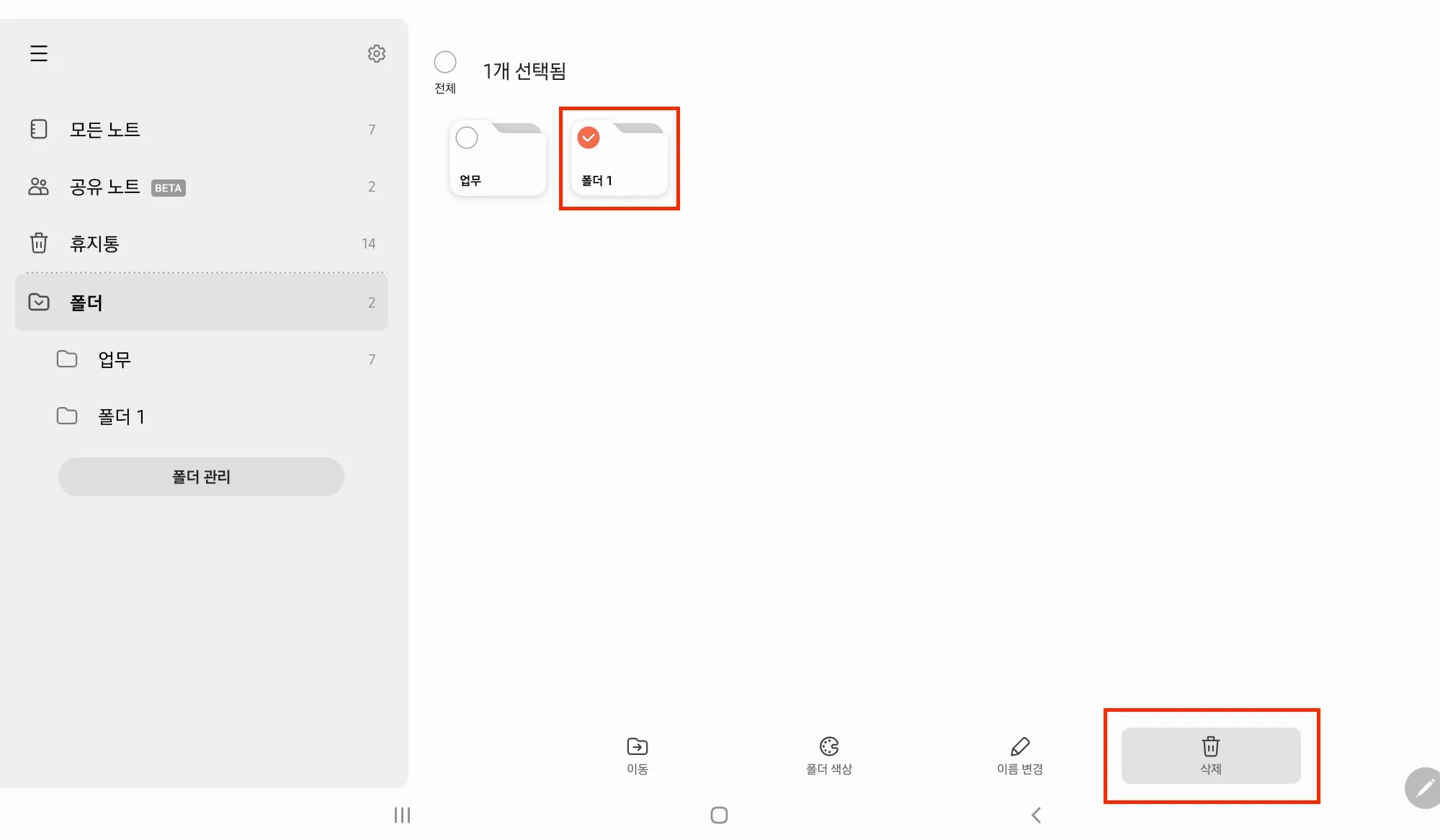 01. [옵션 더보기] 점 세개 클릭 → 삭제 폴더 선택 → 삭제 클릭