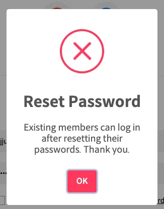 Those who are already members will see the pop-up message about resetting their password. Click [OK].