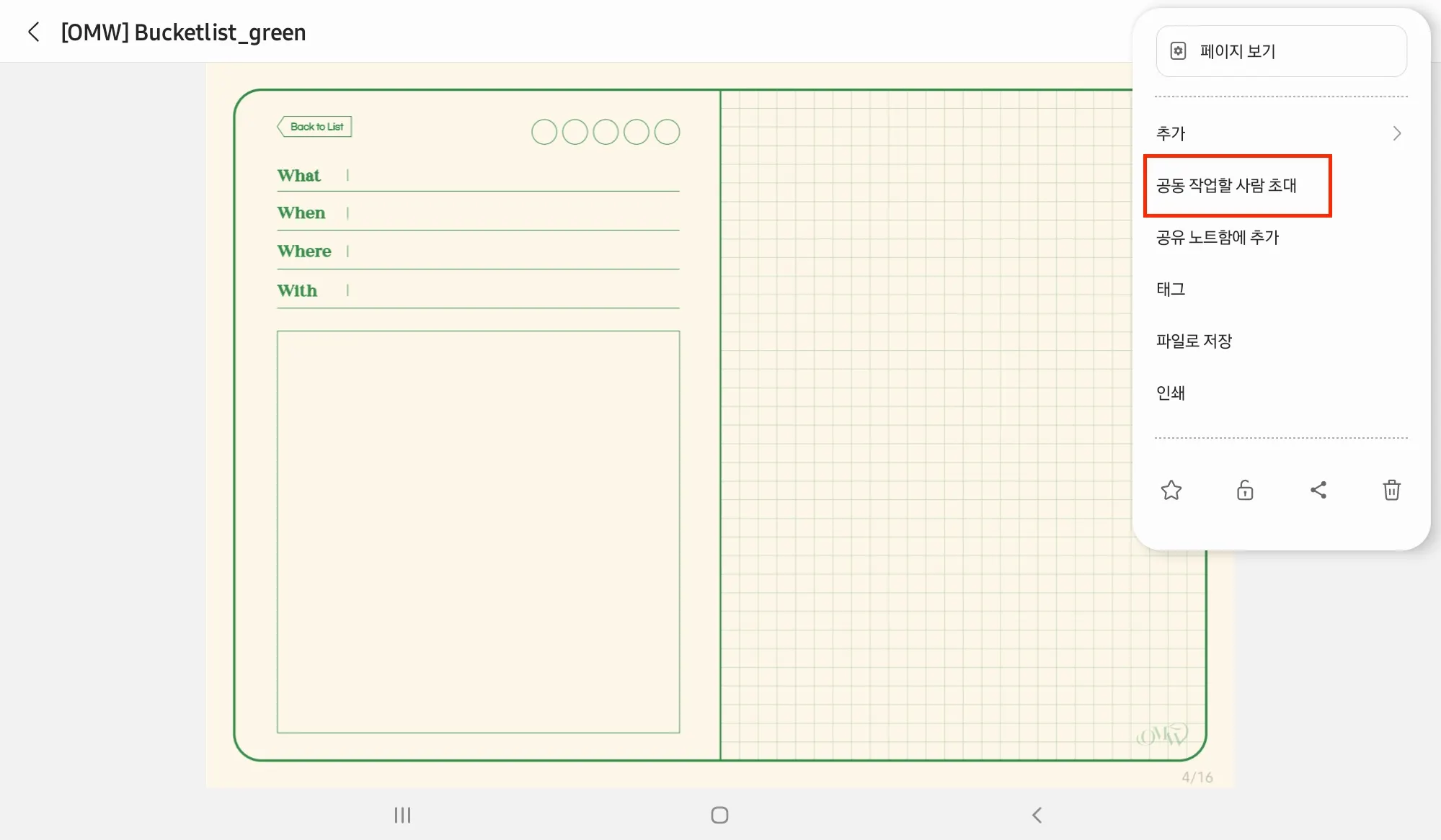01. 공유 노트 → 공동 작업할 사람 초대 클릭